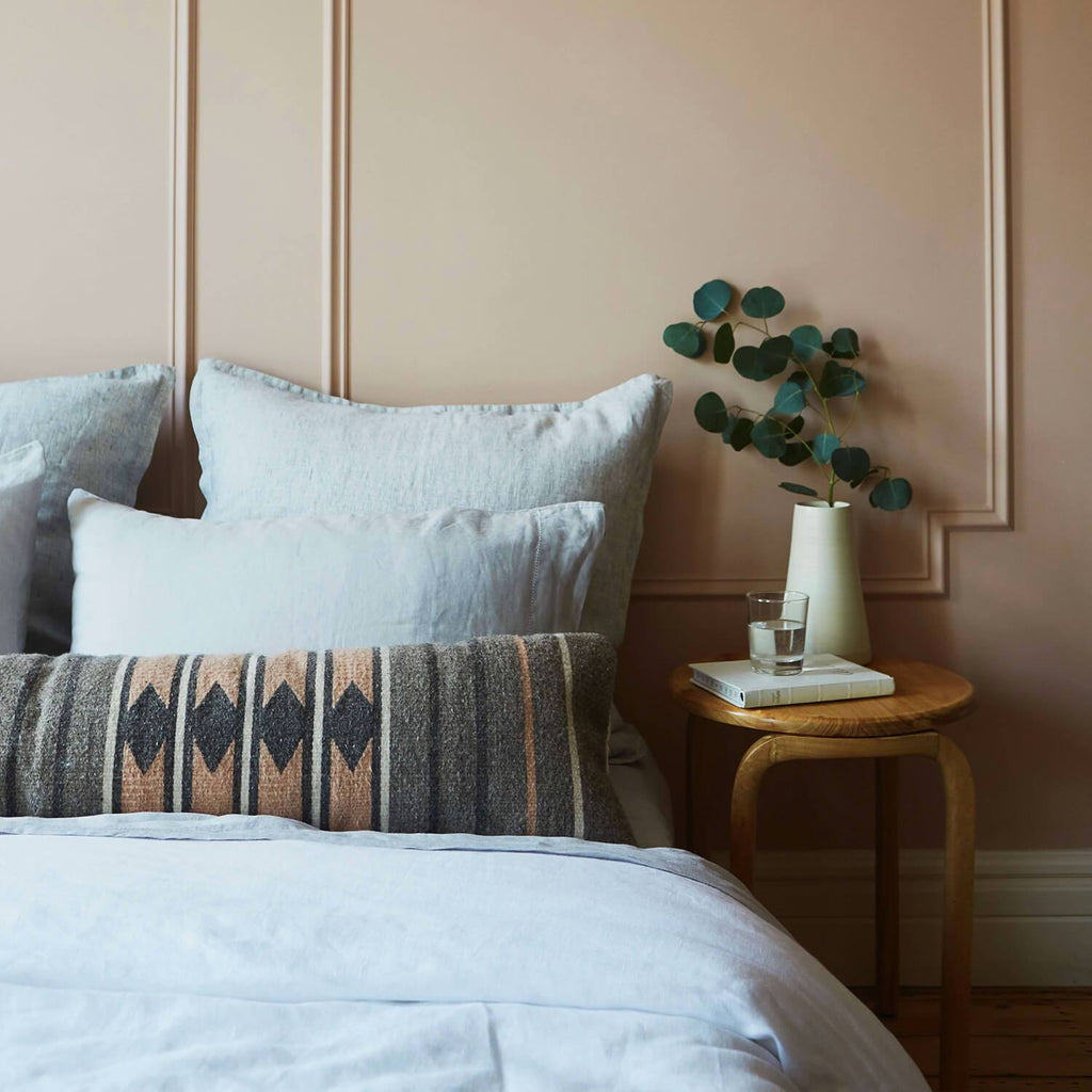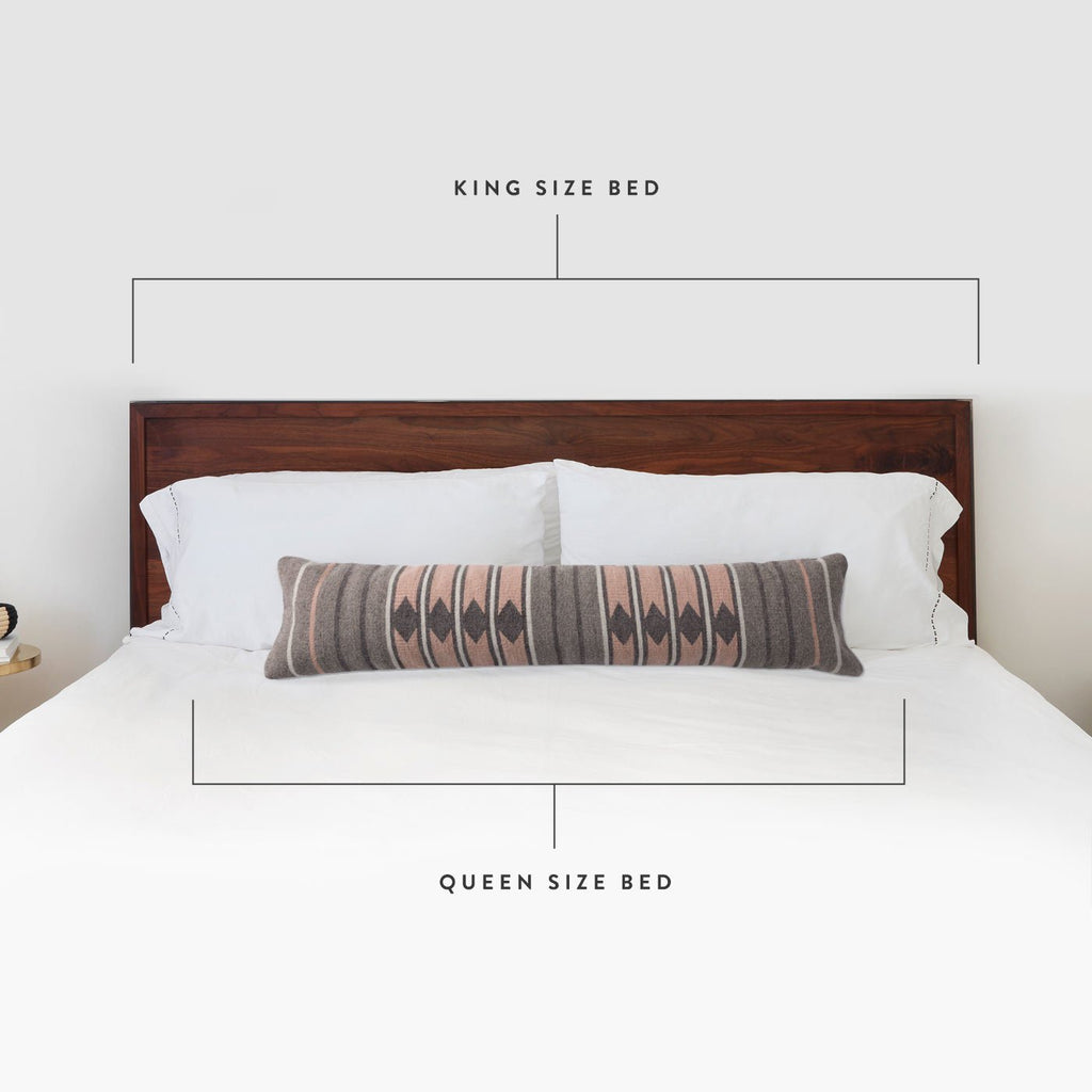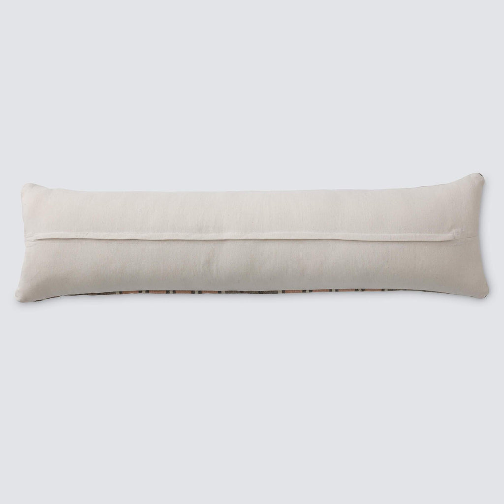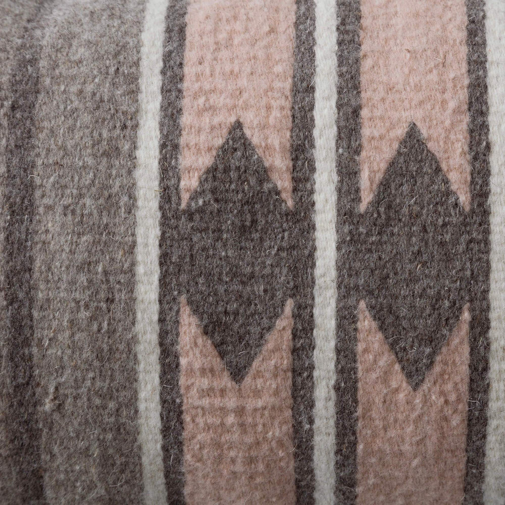 Ancient Zapotec design in subtle earth tones, this zero-effort lumbar pillow is a work of art. Featuring a soft blush hue, hand-dyed from cochineal bugs (yes...bugs), the color pairs perfectly with the all-natural, un-dyed shades of grey.