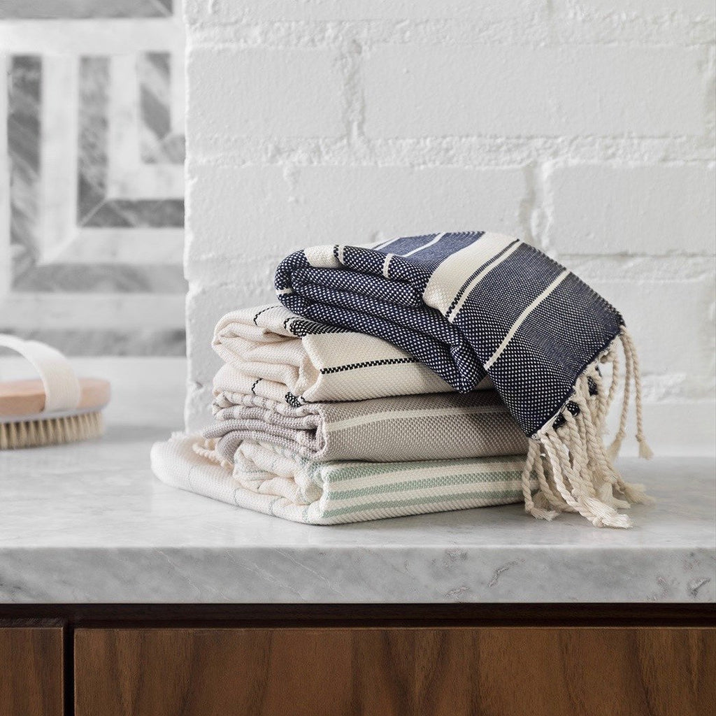 Crafted by a weaving cooperative right outside of Marrakech, each towel takes over a day to complete. All made start to finish in a fair trade environment.