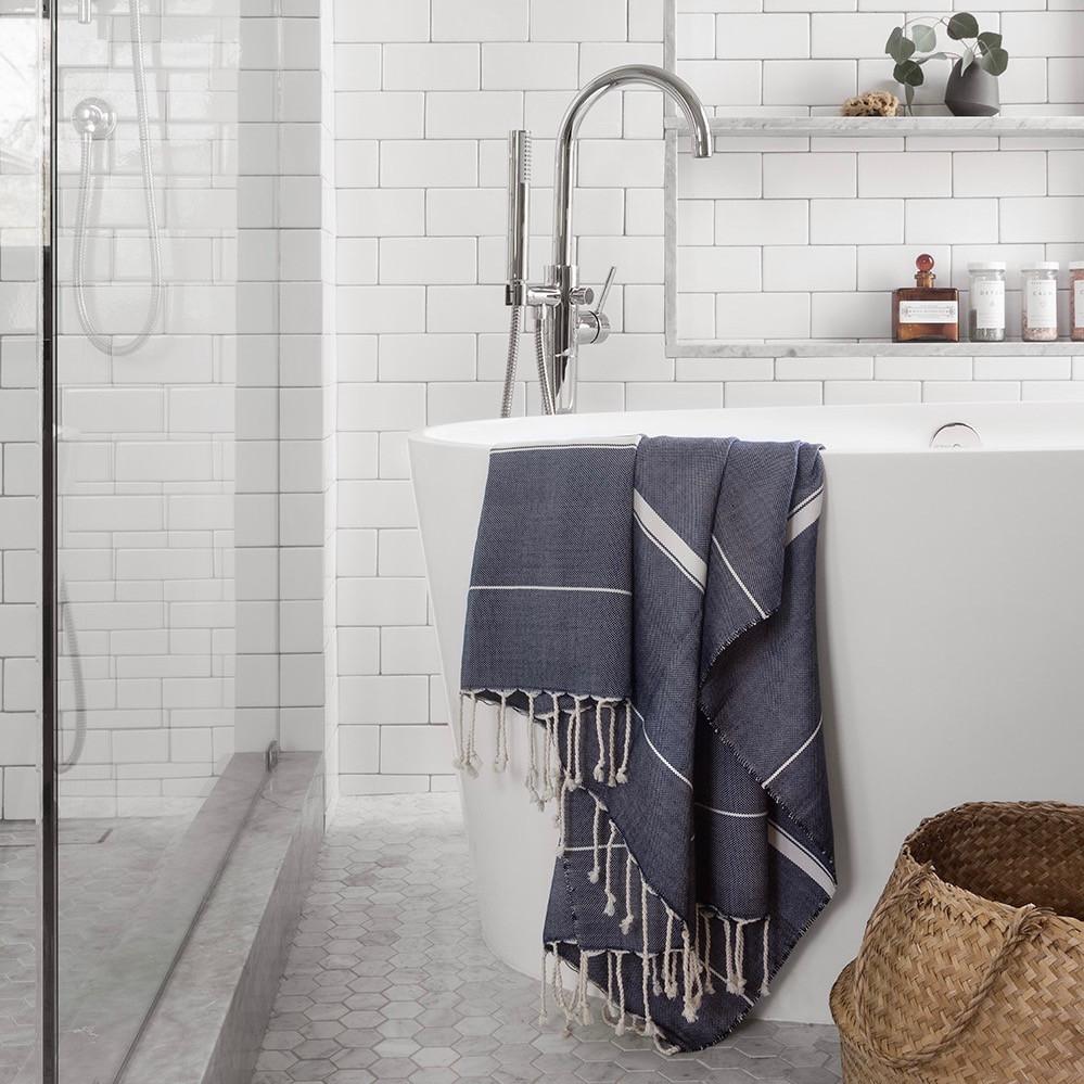 Hand-loomed using light and airy Egyptian cotton, these towels are wrap-me-up soft. Designed in a rich indigo hue and finished with subtle tassels, these oversized bath and hand towels are the ultimate luxury for the everyday.