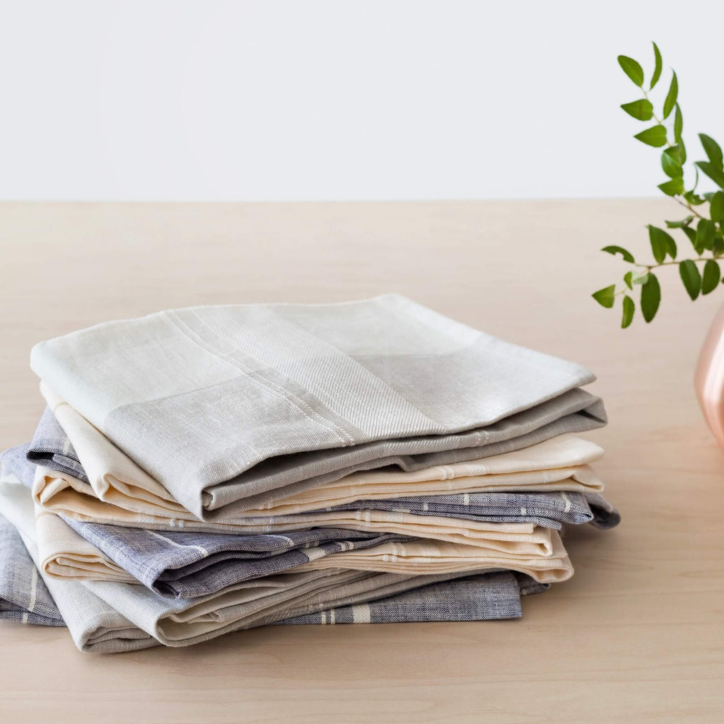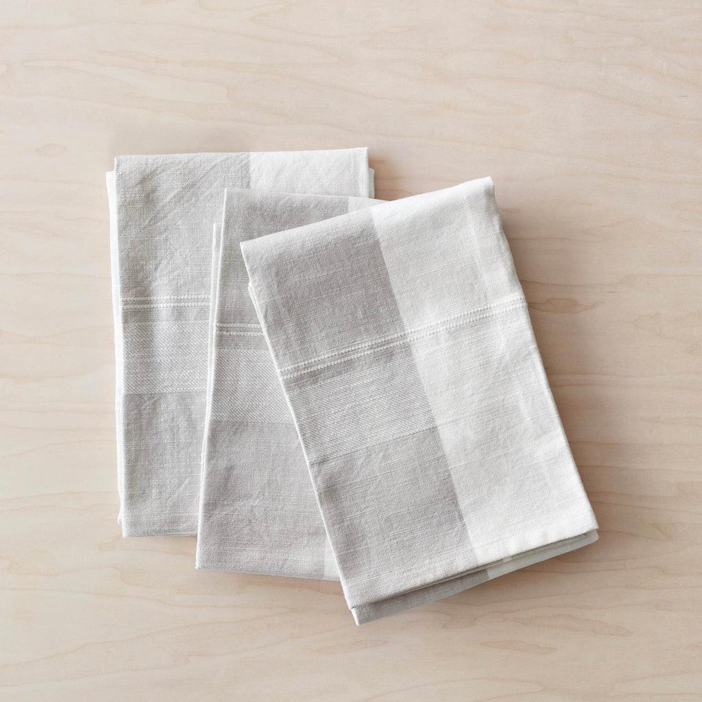 Hand-loomed from locally-sourced cotton, these modern kitchen towels are lightweight, absorbent, and oh-so-soft.
