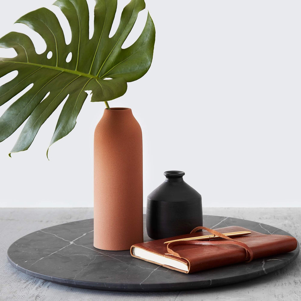 With its earthy terracotta hue and streamlined design, this vase doubles as an art piece. The perfect compliment to greenery or sprigs, it instantly warms up any tablescape or shelf. For a high-impact look, we opt for pairing as a set of three.
