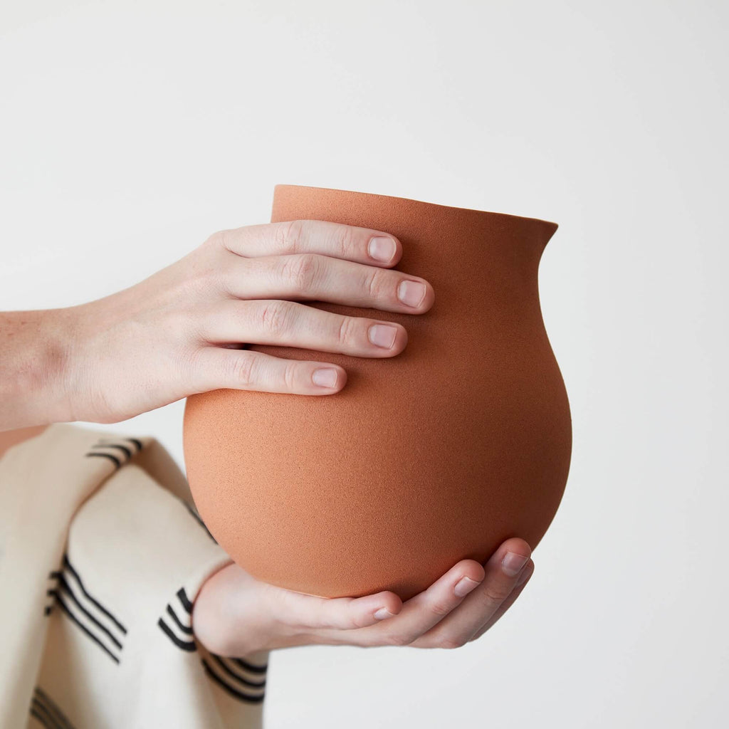 A perfect pair: both of our gorgeous Engobe terracotta vases, handcrafted in Jalisco, Mexico.