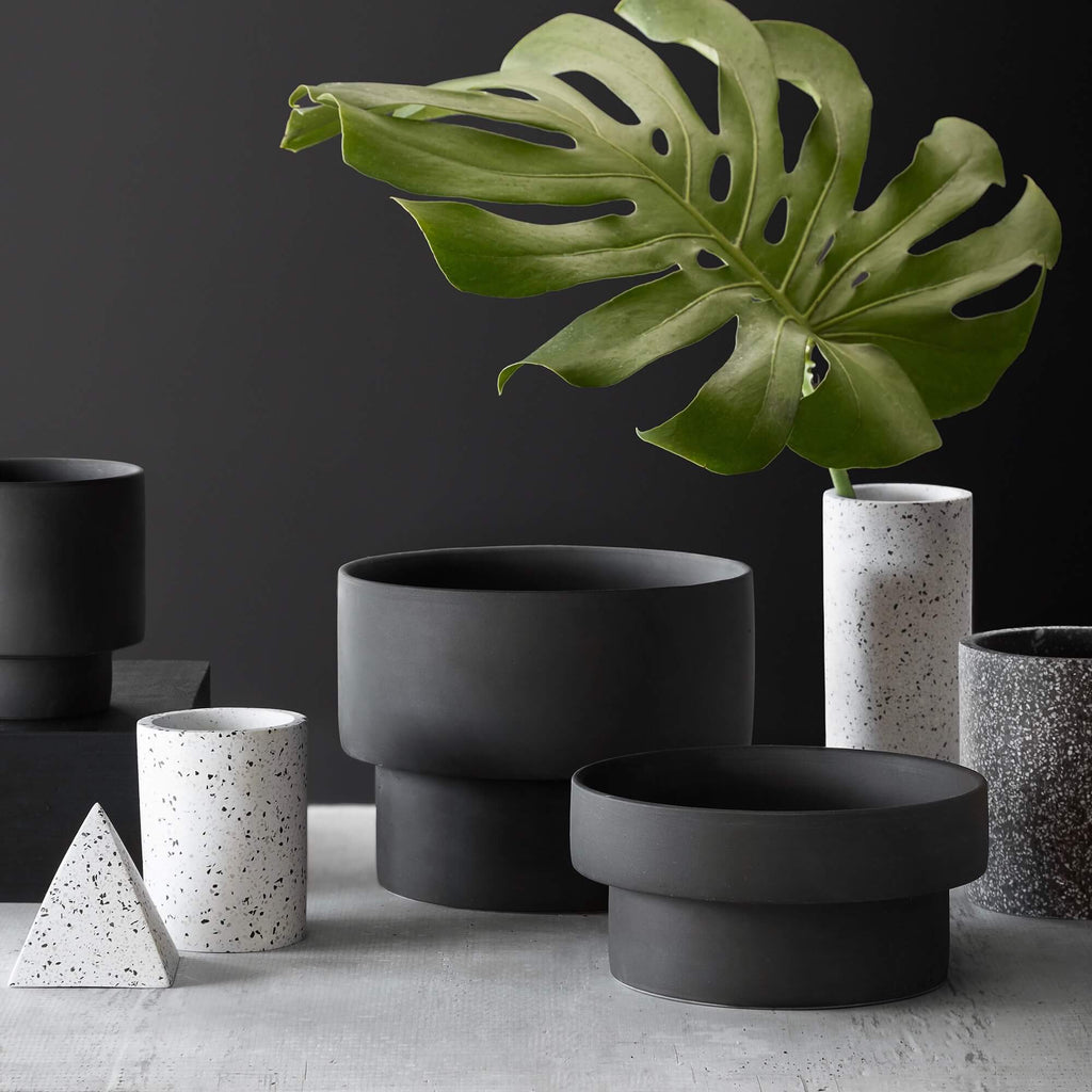 Black, matte, modern. Artisan-crafted planters that take everyday houseplants to new heights.
