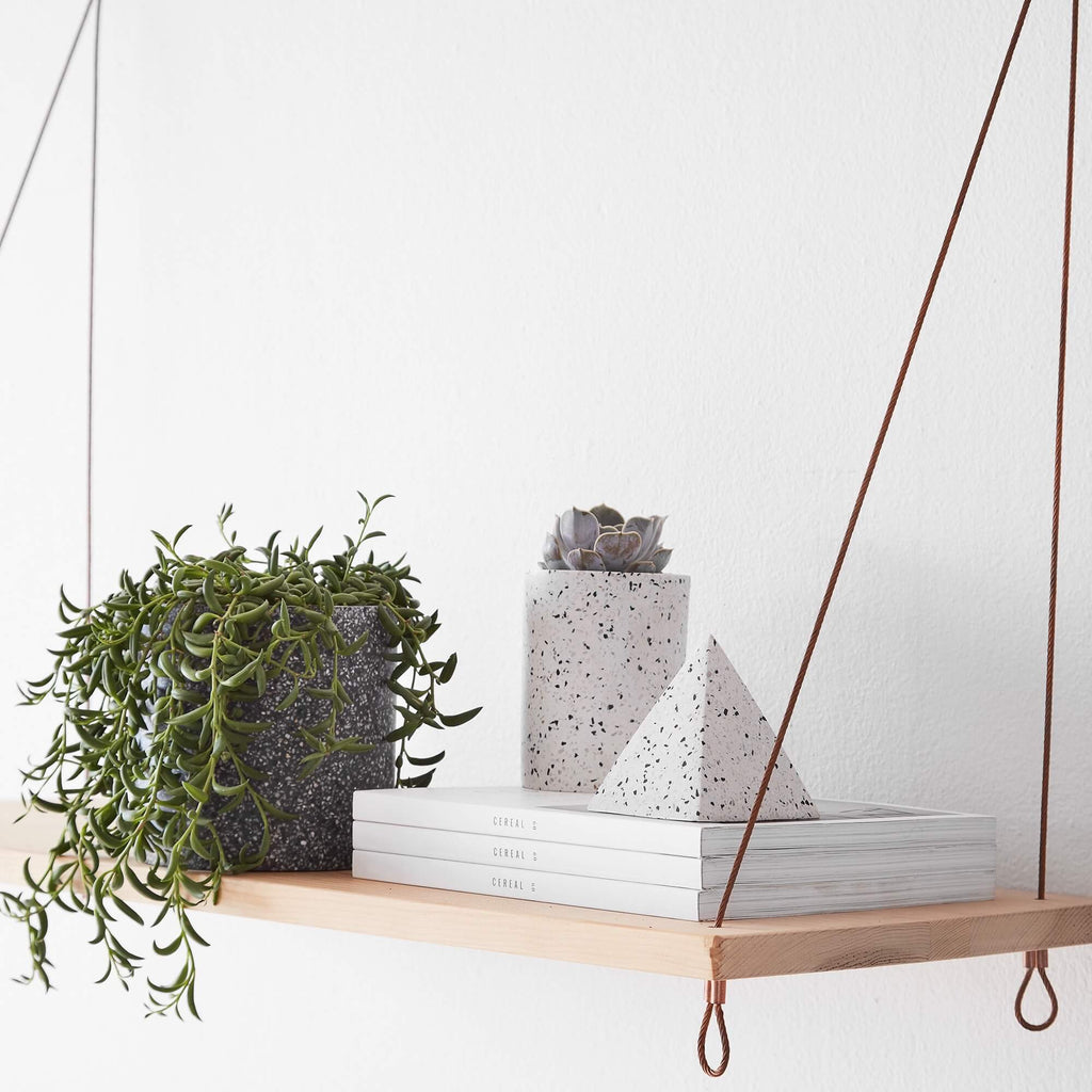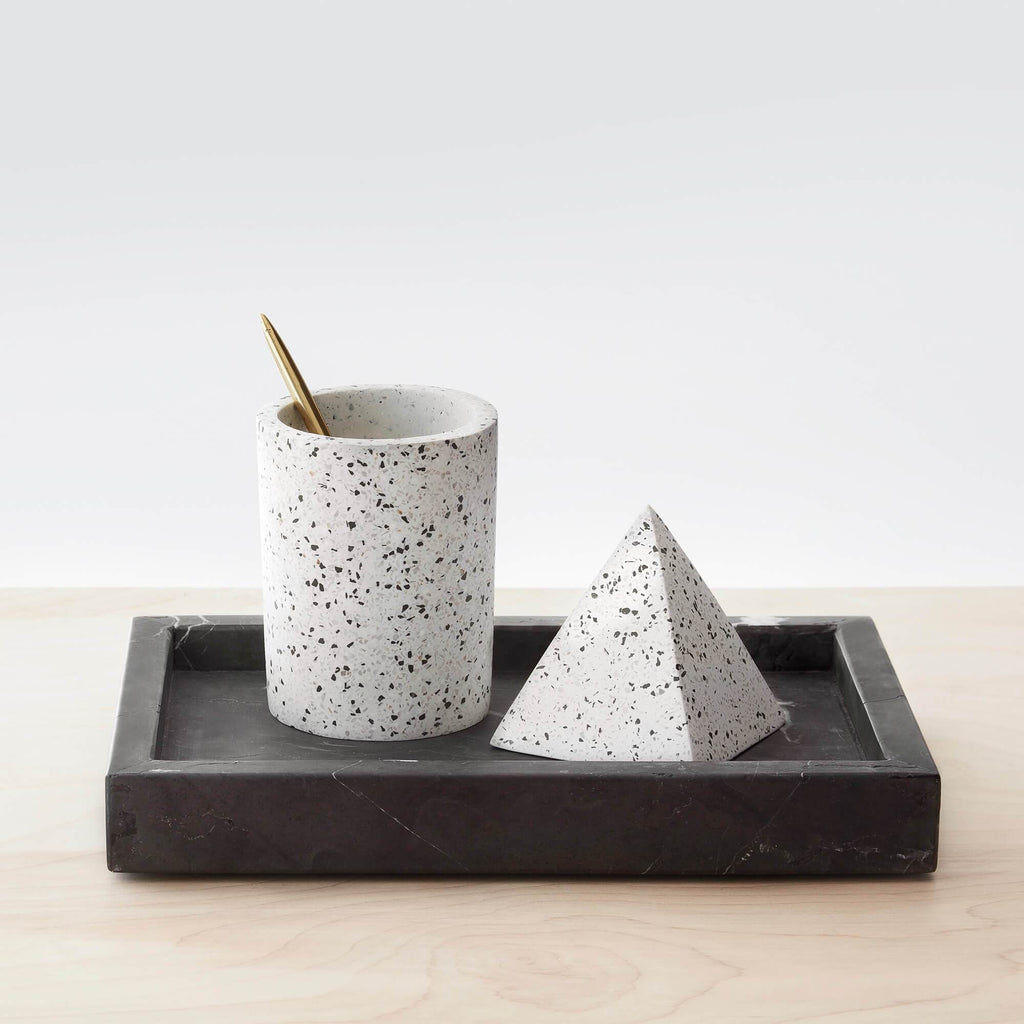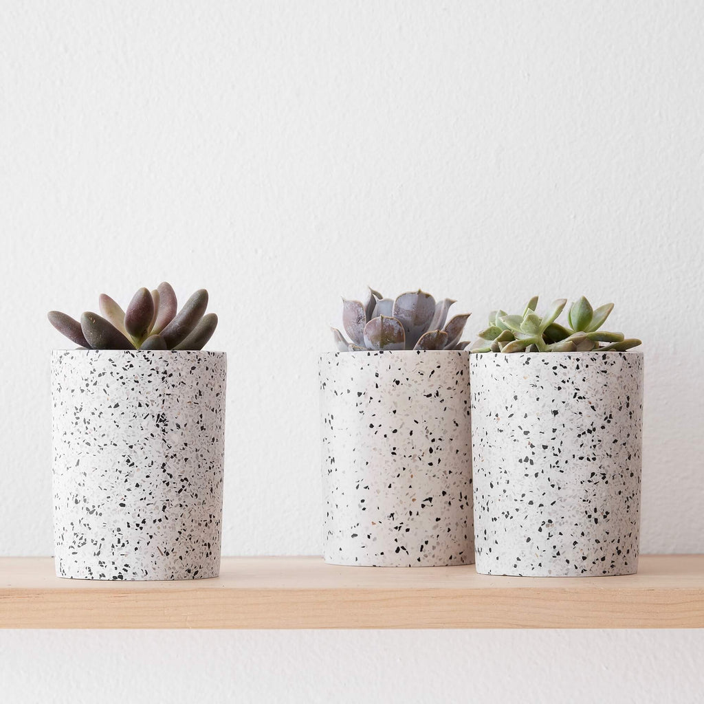 Terrazzo is back, and it’s never looked better. With an artful mix of granite, marble, and quartz, this set of three vessels immediately dresses up any coffee table or bathroom counter.