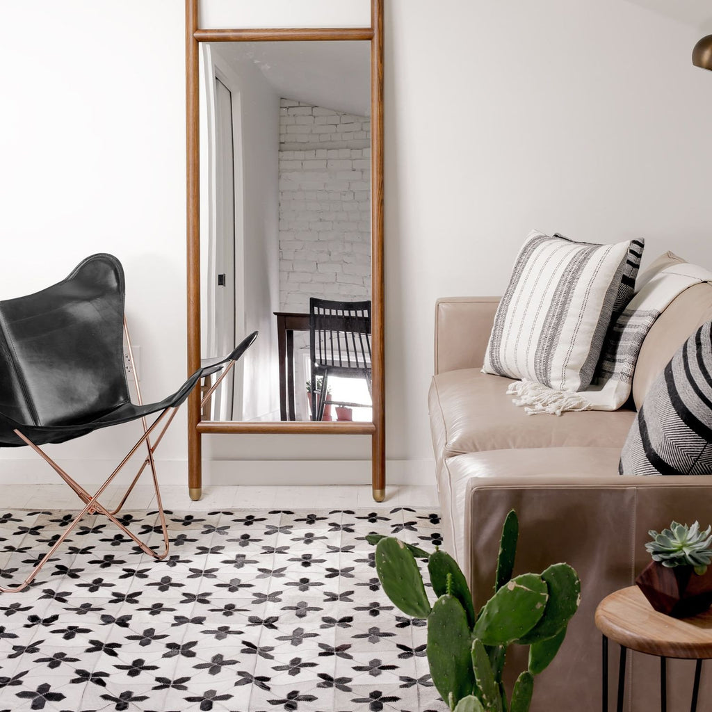 Its large size (20" x 20"), super soft feel, and neutral palette make it the perfect base layer for a bed or large sofa.