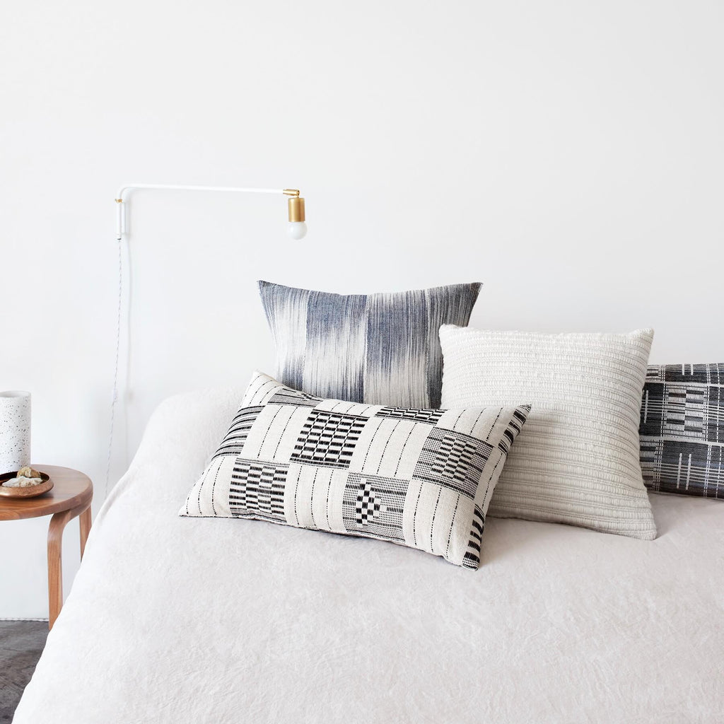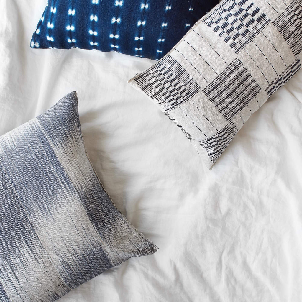 Hand-loomed with lightweight, organic cotton, each pillow takes almost two days to complete. All made exclusively by a fair trade collective in Waraniéné, Côte d’Ivoire.