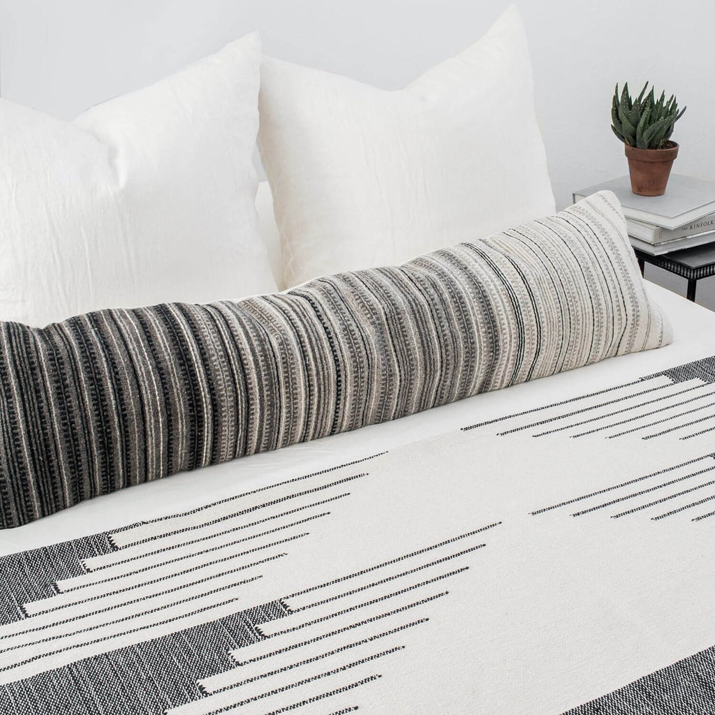 Masterfully handwoven in Oaxaca, this lumbar pillow blends Zapotec design with a minimalist palette.