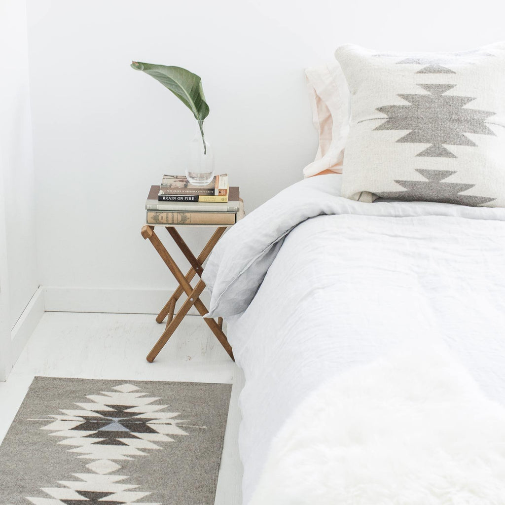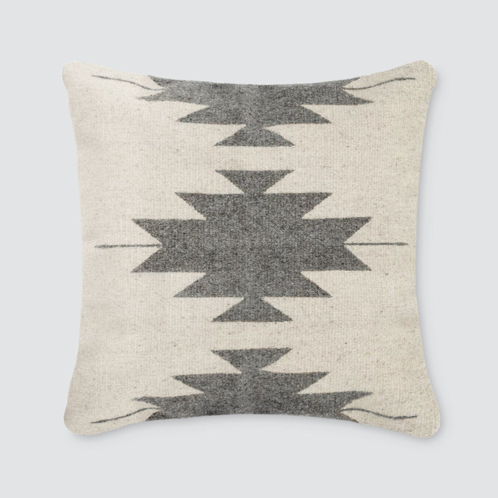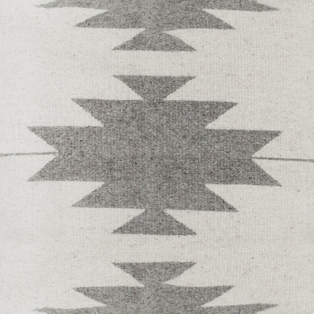 Inspired by Zapotec patterns from Mexico’s Oaxaca region, the soft grey and cream color combination lets these structural designs take center stage.