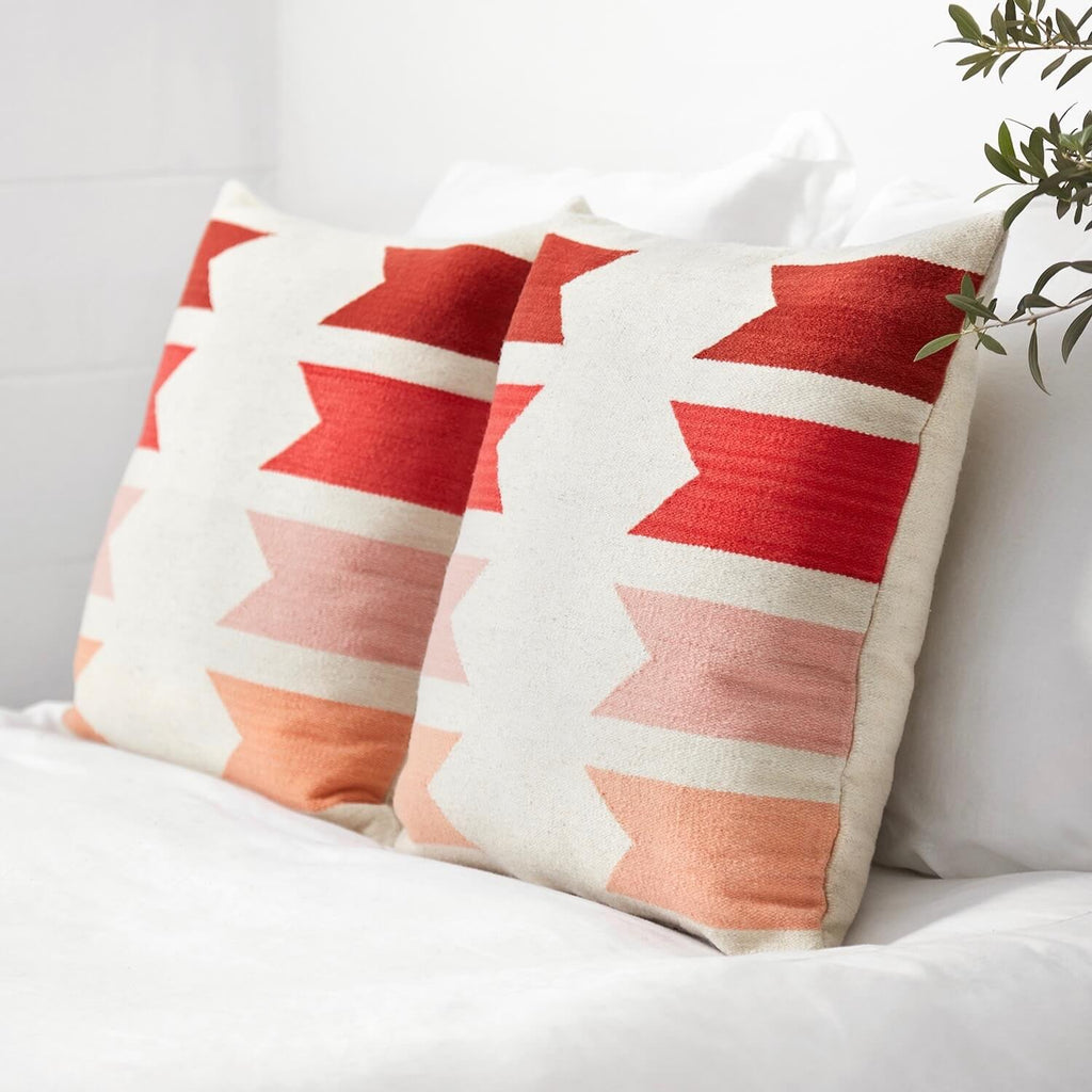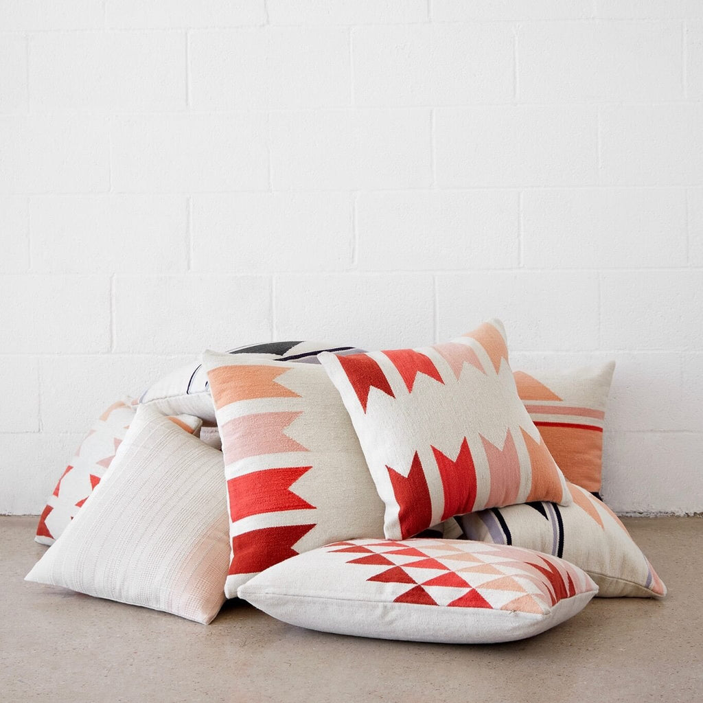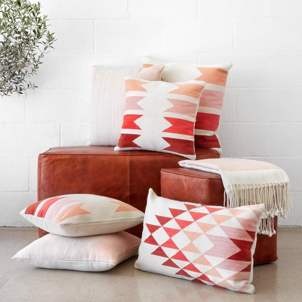 Say hello to the new fan-favorite here at The Citizenry. Minimal design with a bit of global edge, this handwoven pillow features a spectrum of gorgeous desert-inspired hues, from soft blush to rust.