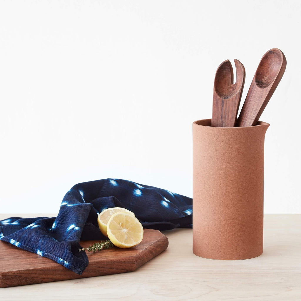 NOTE: This beauty is made from a proprietary mixture of Jiutepec clay and high temperature stoneware that took years to perfect. The end result is a textured finish that is not only stunning but also less delicate than traditional terracotta. Best to style as a dry vase (or use a coaster) to guard against condensation.