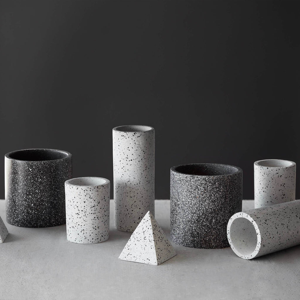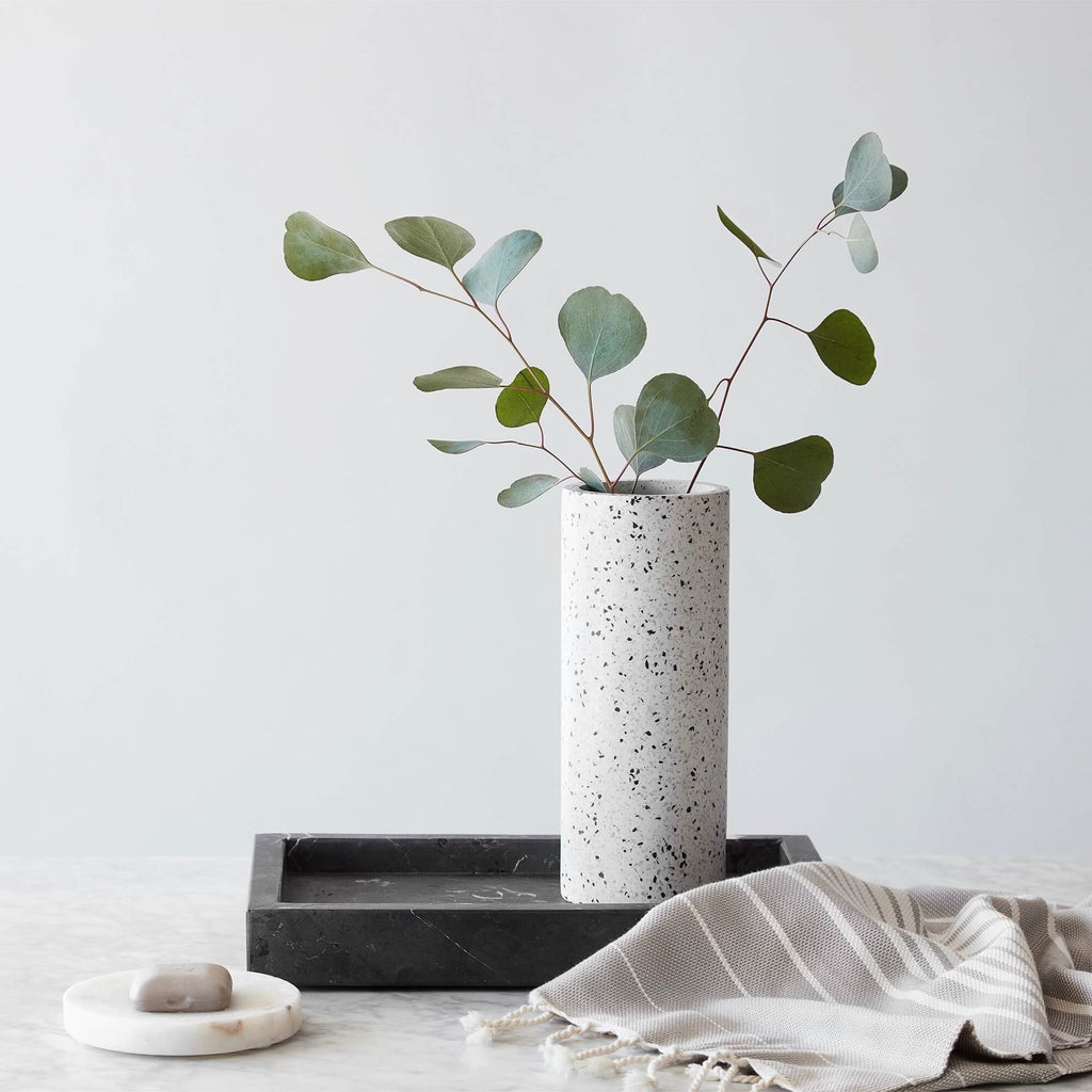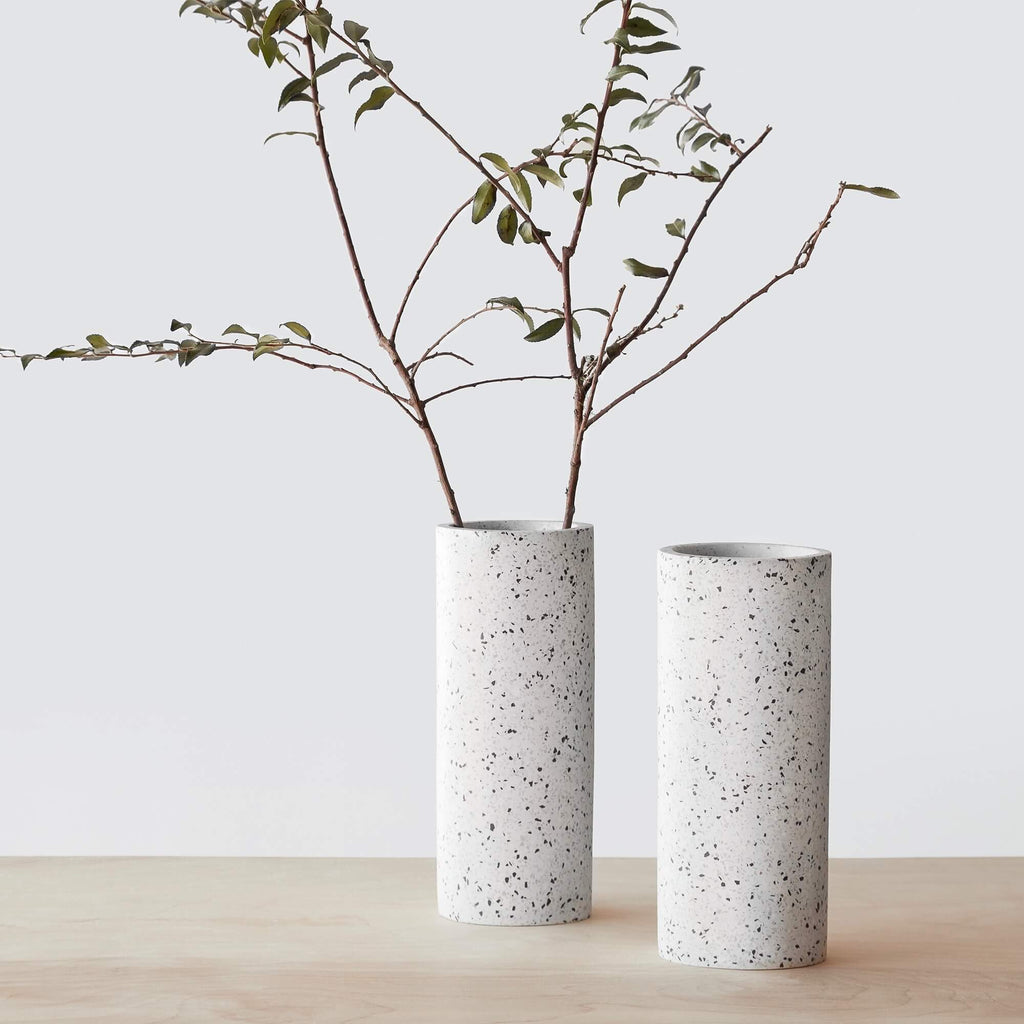 A mainstay of mid-mod decor, terrazzo is making a comeback with its artful mix of granite, marble, and quartz. Designed to highlight this material, this tall vase features clean, minimal lines, letting the statement-making terrazzo take center stage.