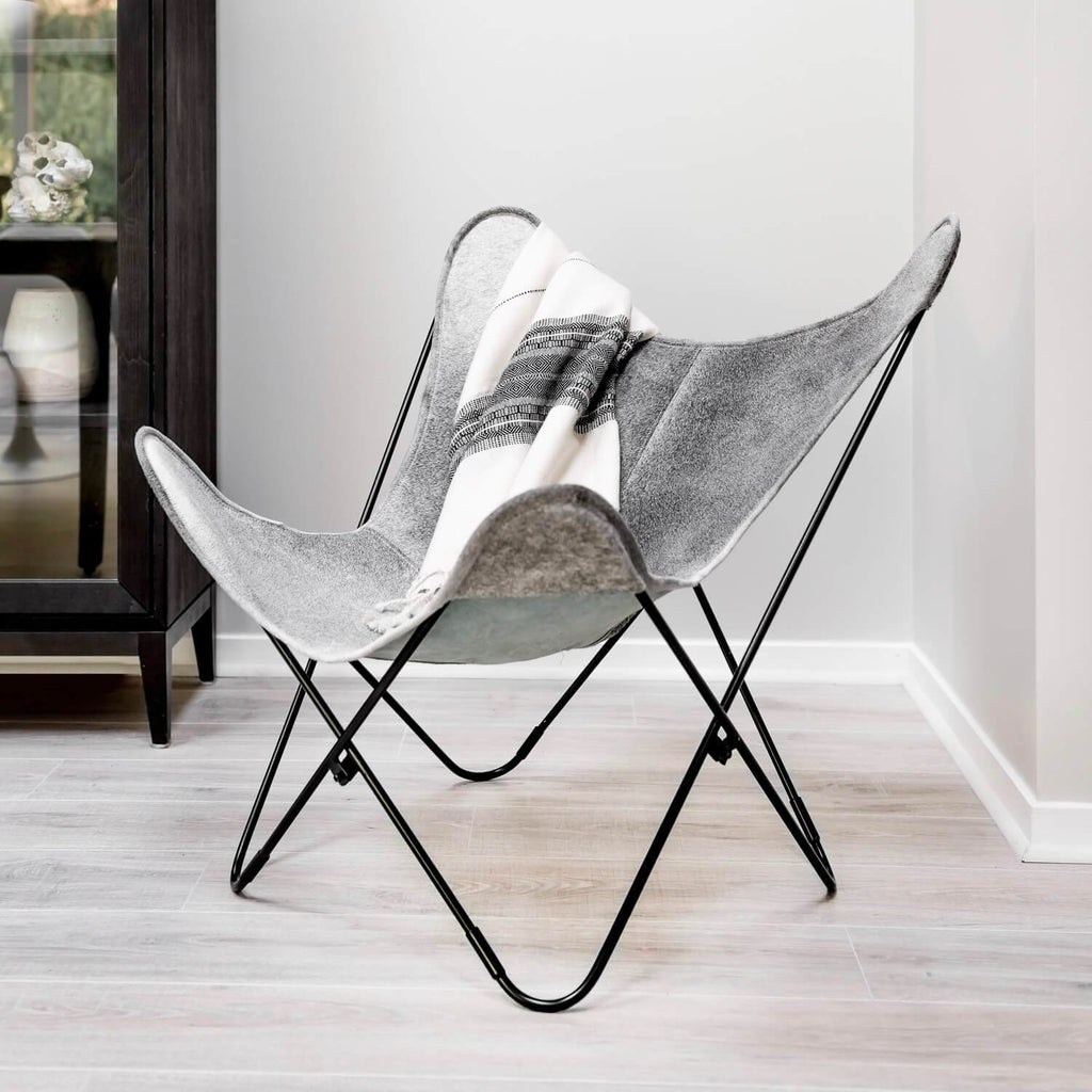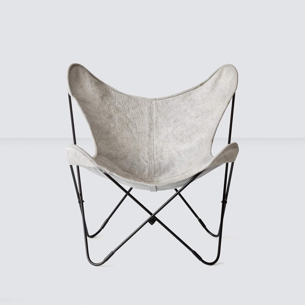 With its modern design and time-tested craftsmanship, this cowhide butterfly chair is authentically Argentine. With a light grey cowhide cover, accented by a minimal black base, this mid-mod staple brings a bit of sophistication and edge wherever he goes. We partnered with a small workshop in Buenos Aires to create this timeless design. From start-to-finish, each chair takes three days to complete, all made in a fair trade environment.