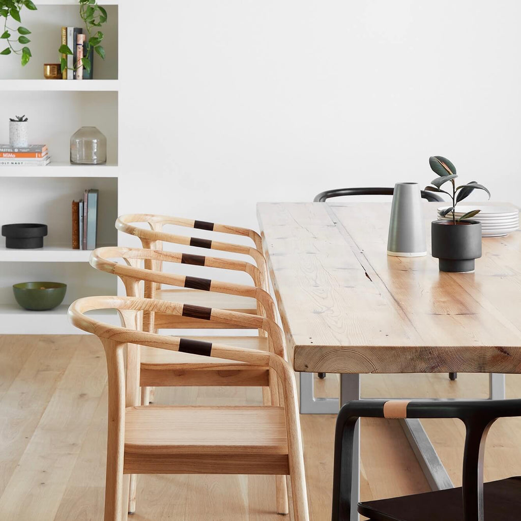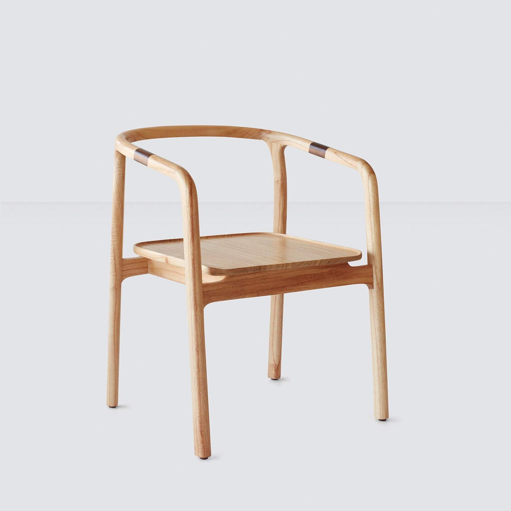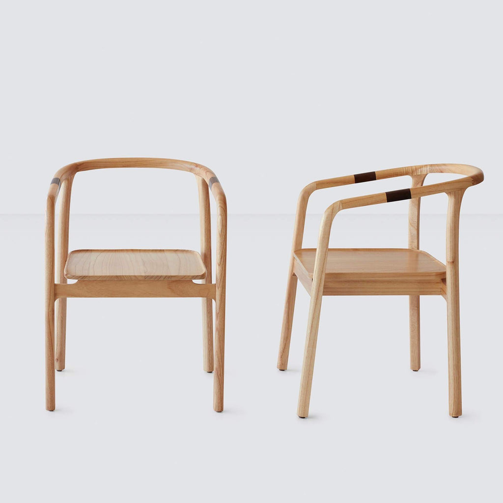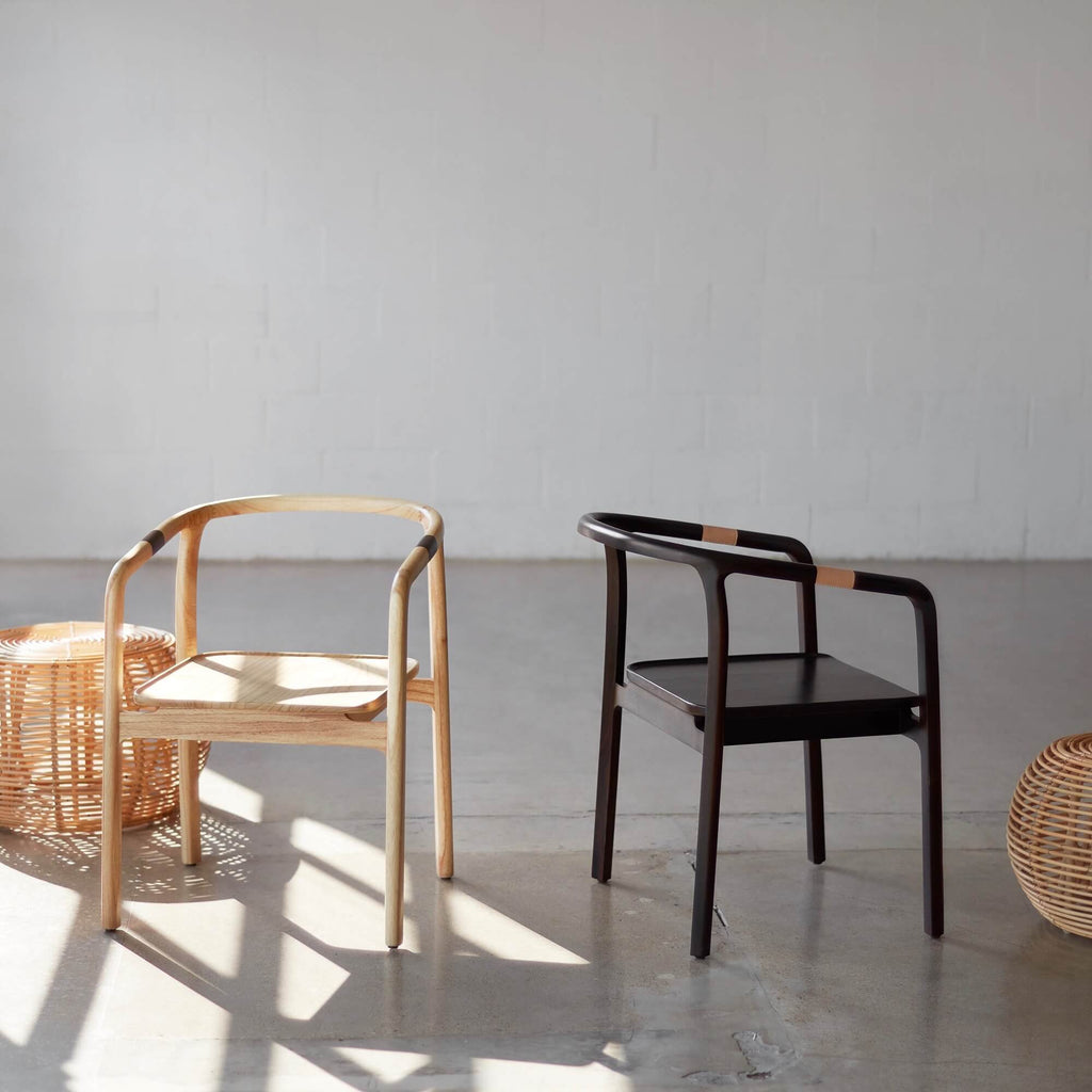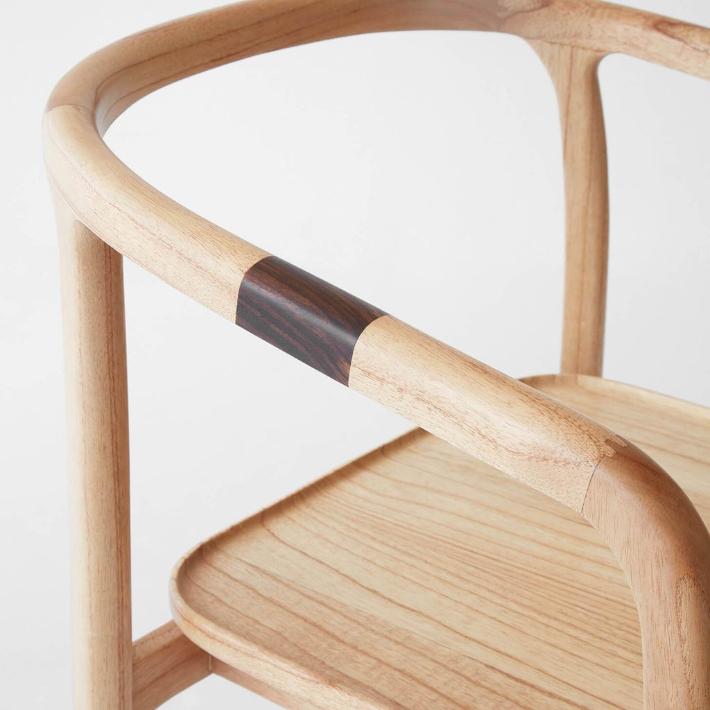 A striking mix of light mindi with deep rosewood accents, this architectural accent chair highlights the natural beauty of Indonesian wood. Style it as a dining set or as a duo in your living room – this piece adds a high-design, yet organic element to any space.