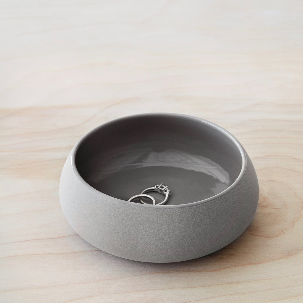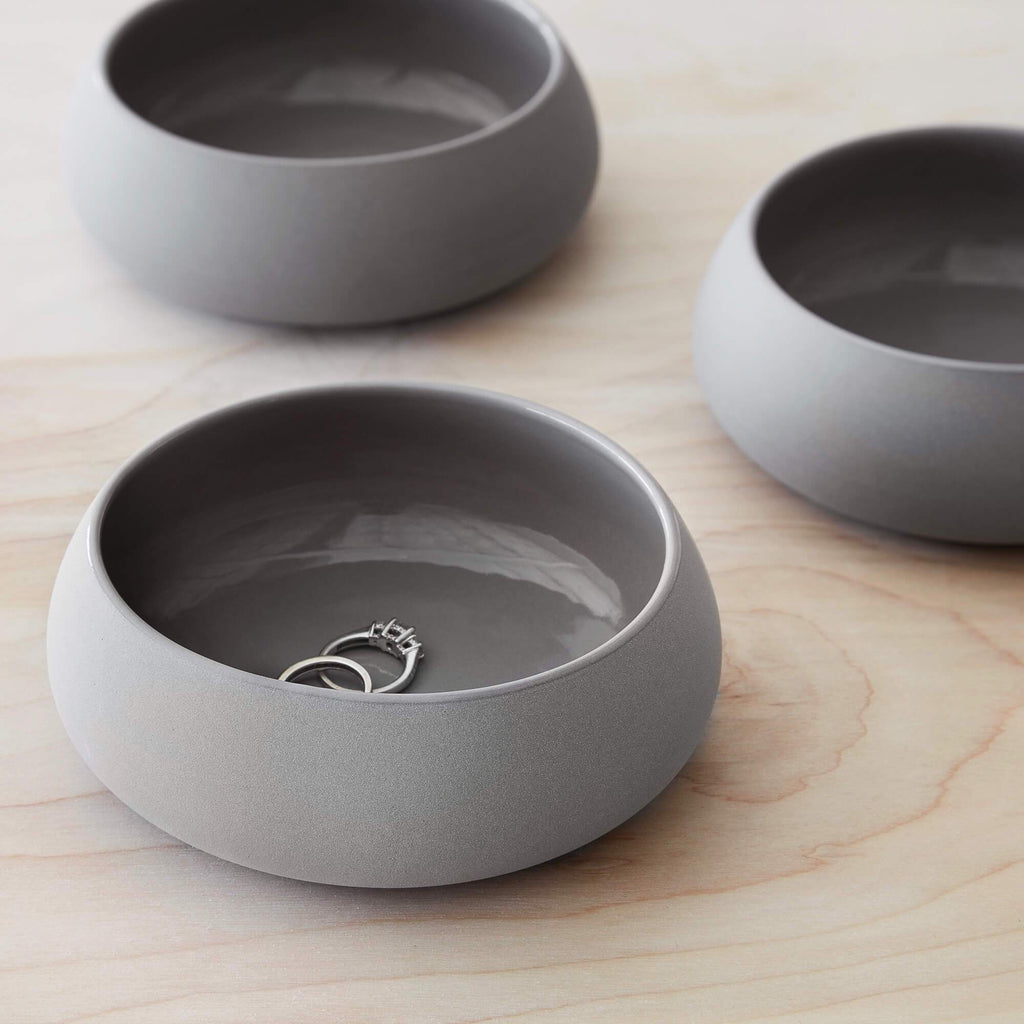With a matte grey finish and glossy interior, this tiny ceramic bowl is the perfect styling object. A few of our favorite uses: holding jewelry on the bedside table or bathroom counter, stashing paperclips in the office, or serving olives and other garnishes at cocktail hour. This little guy has endless potential.