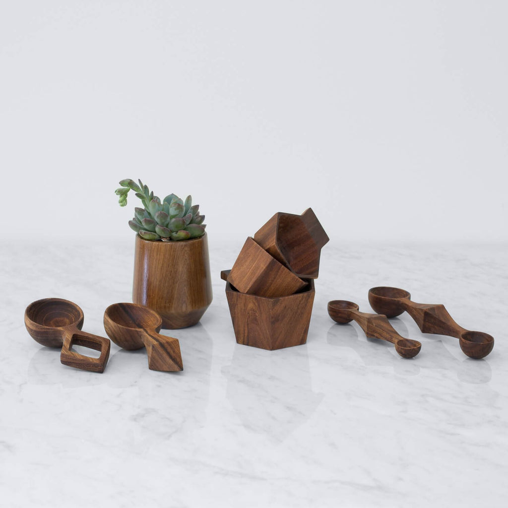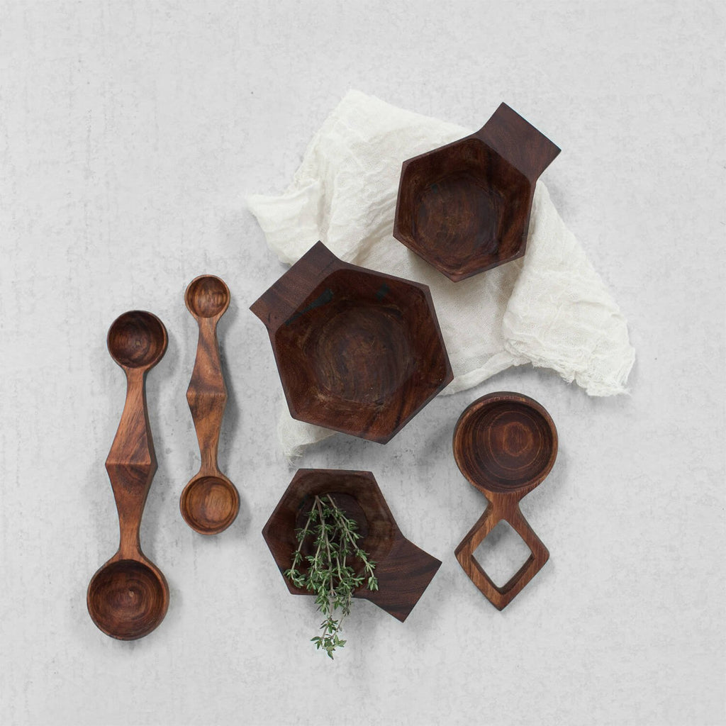 Your morning coffee just got more interesting. Handcrafted from rich Tzalam wood, these geometric coffee scoops add a dash of luxury to your daily ritual.