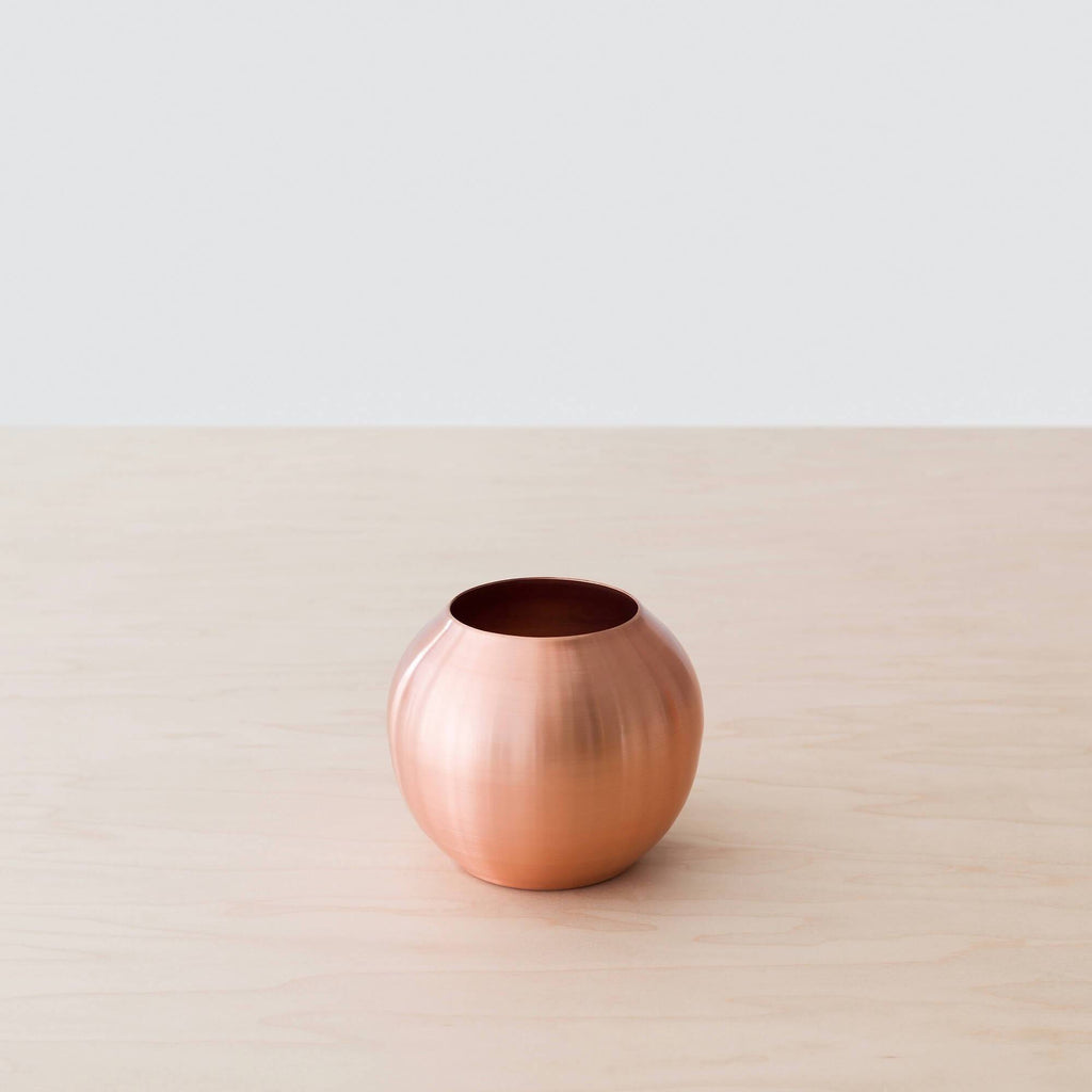 Handcrafted from luxe copper from Northern India, these sculptural bud vases instantly dress up your shelf or coffee table. For a high-impact look, we like to style as a duo with sprigs of minimal greenery.