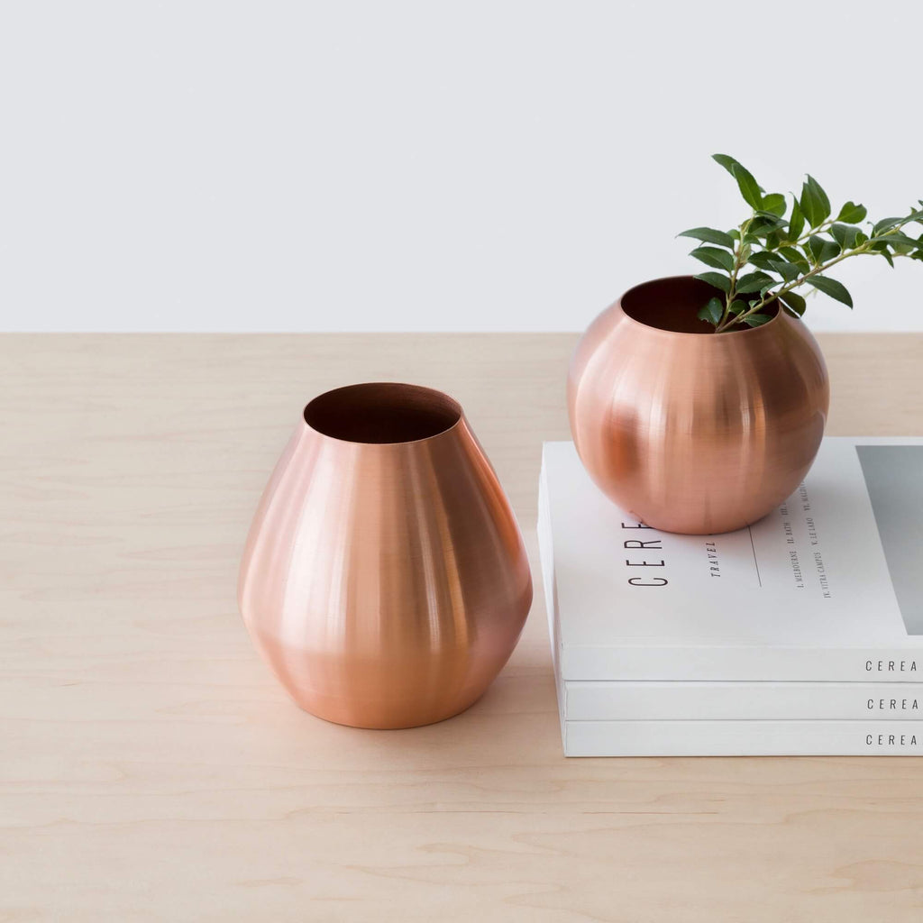 Handcrafted from luxe copper, sculptural bud vases to dress up your space.