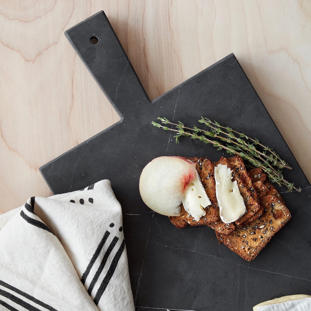 Matte black marble. Meticulously hand-carved angles. A modern serving board that’s sure to steal the show at your next dinner party.