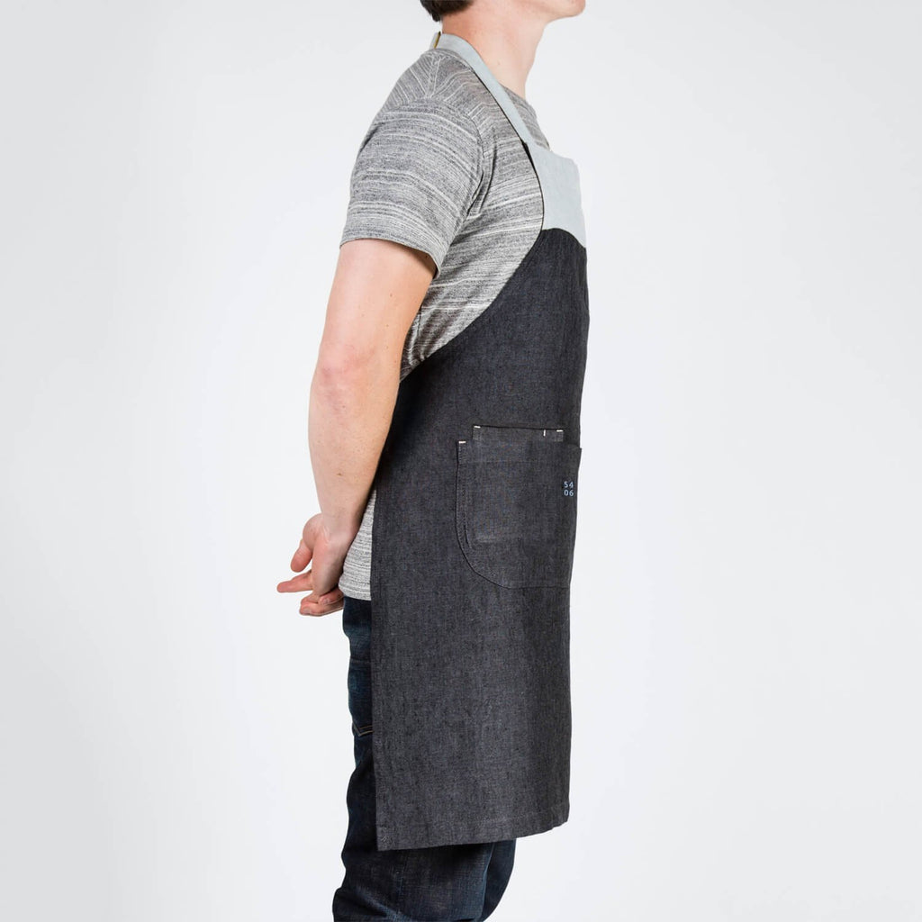 Featuring a dark blue-grey base with soft blue top, this two-toned apron gives you a sharp, sophisticated look. Complete with multiple pockets, it’s as functional as it is handsome.