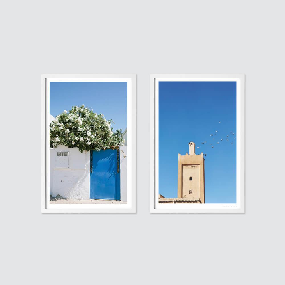 A combination of lush botanicals and impressive architectural design, this diptych-style set highlights the color and character we encountered during our trek across Morocco.