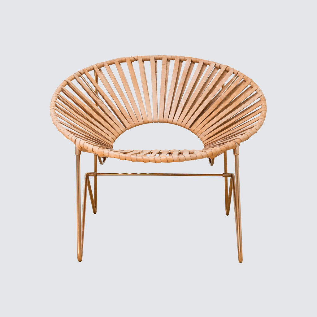 Not only did we add more lounge appeal with a wider seat and more reclined angle, but we also introduced leather sourced from Mexico’s leather capital, Leon. The leather, instead of the classic beachside plastic, elevates the design to bring this patio staple indoors.