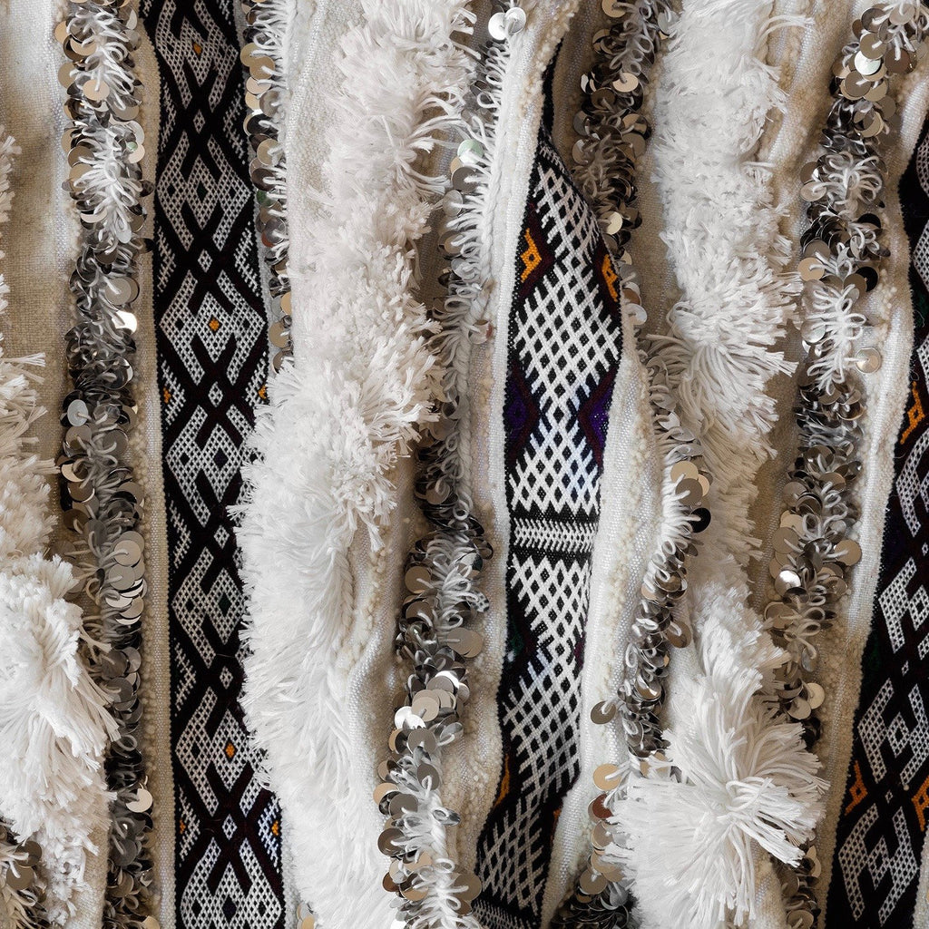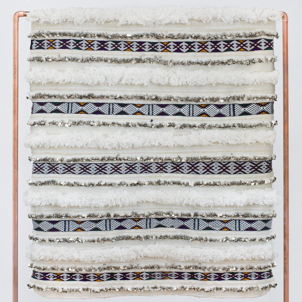 This design is crafted by one of the last groups in Morocco working to preserve this time-intensive art. Typically worn by brides on their big day, these blankets take months to complete, all made in a fair trade environment.