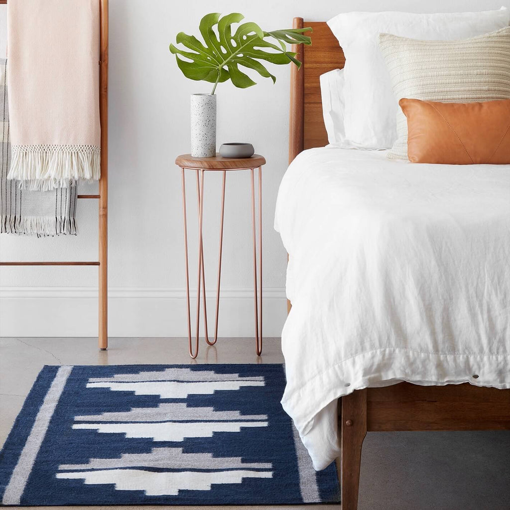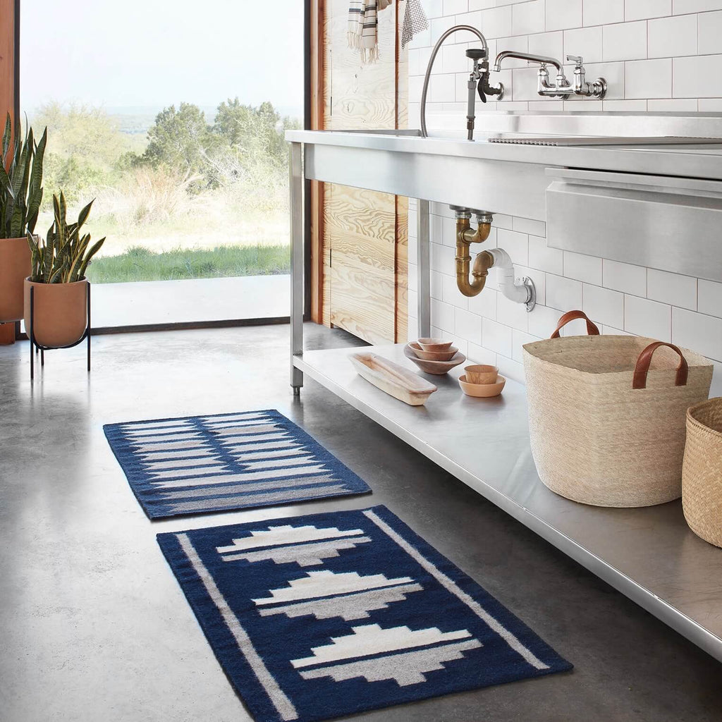 With a hand-dyed palette of deep navy, soft grey, and cream, this accent rug brings a modern, unapologetically global look to your home. Style as a duo in your kitchen, (we like to mix with the Camino Rug), or let it fly solo in your entryway – this handsome fellow is quite versatile.