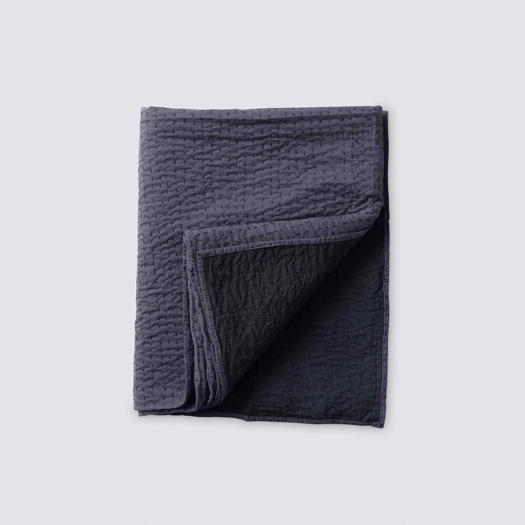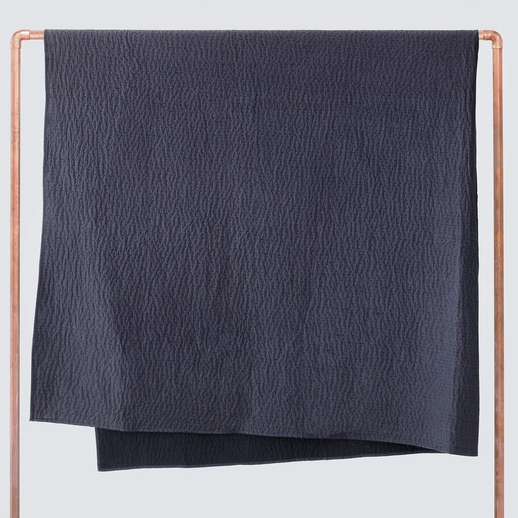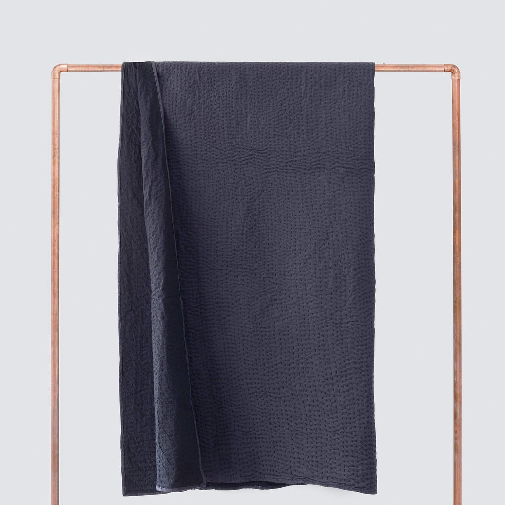 A minimal take on the intricate art of kantha quilting, this double-sided blanket features a striking palette of rich navy and black. Handcrafted from locally-sourced cotton, it is incredibly lightweight, yet durable (i.e. machine washable) – the perfect layer for your bed or couch.