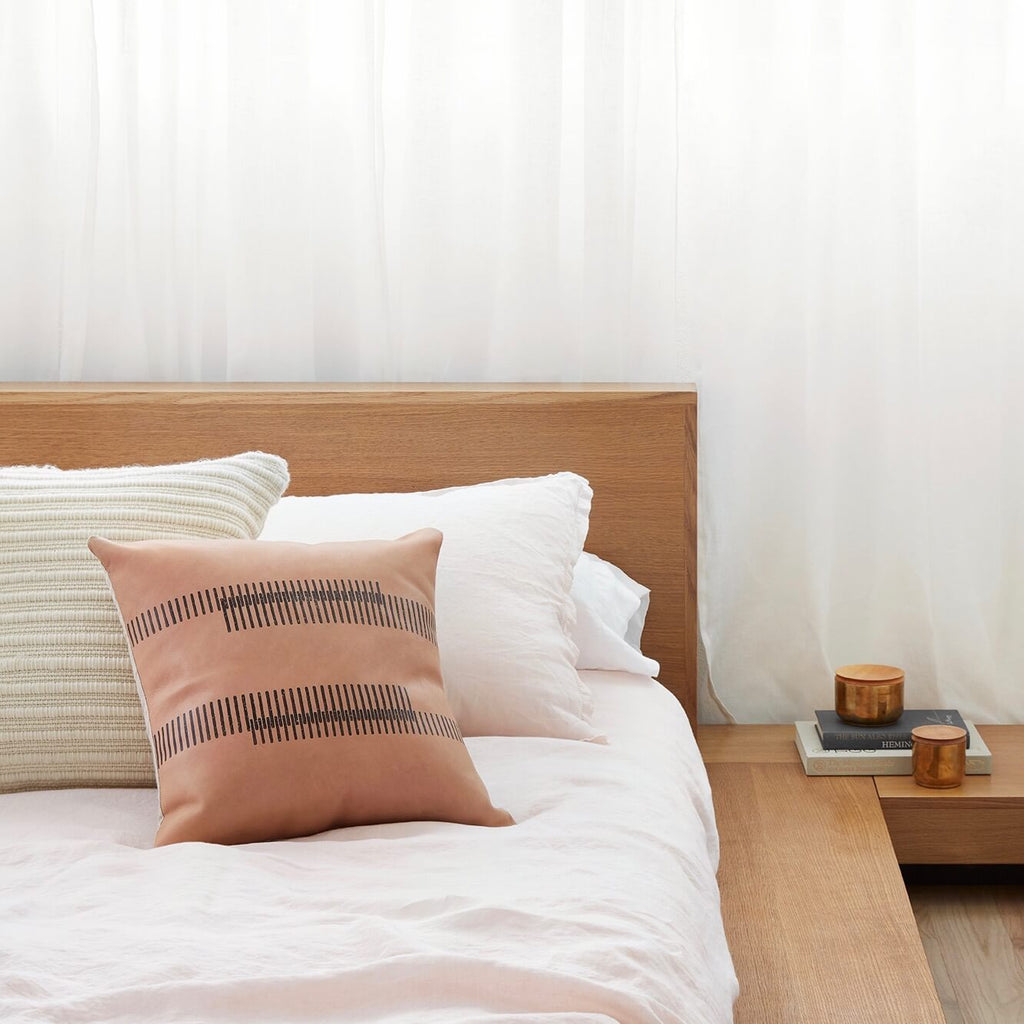 Made from ethically-sourced leather from Kolkata, each pillow is block printed by hand in Jaipur and finished in Gurgaon. From start-to-finish, each pillow takes up to 4 days to complete. All made in a fair trade environment.