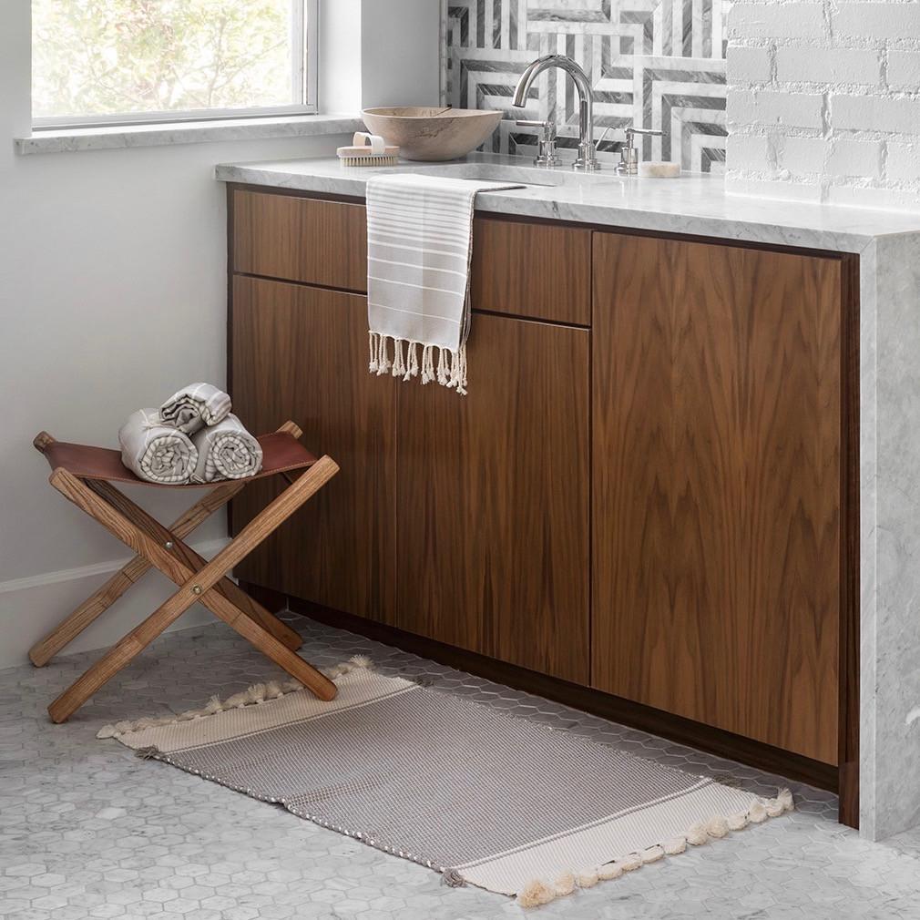 This beautifully woven and subtly colored rug is a perfect fit in my small bathroom.