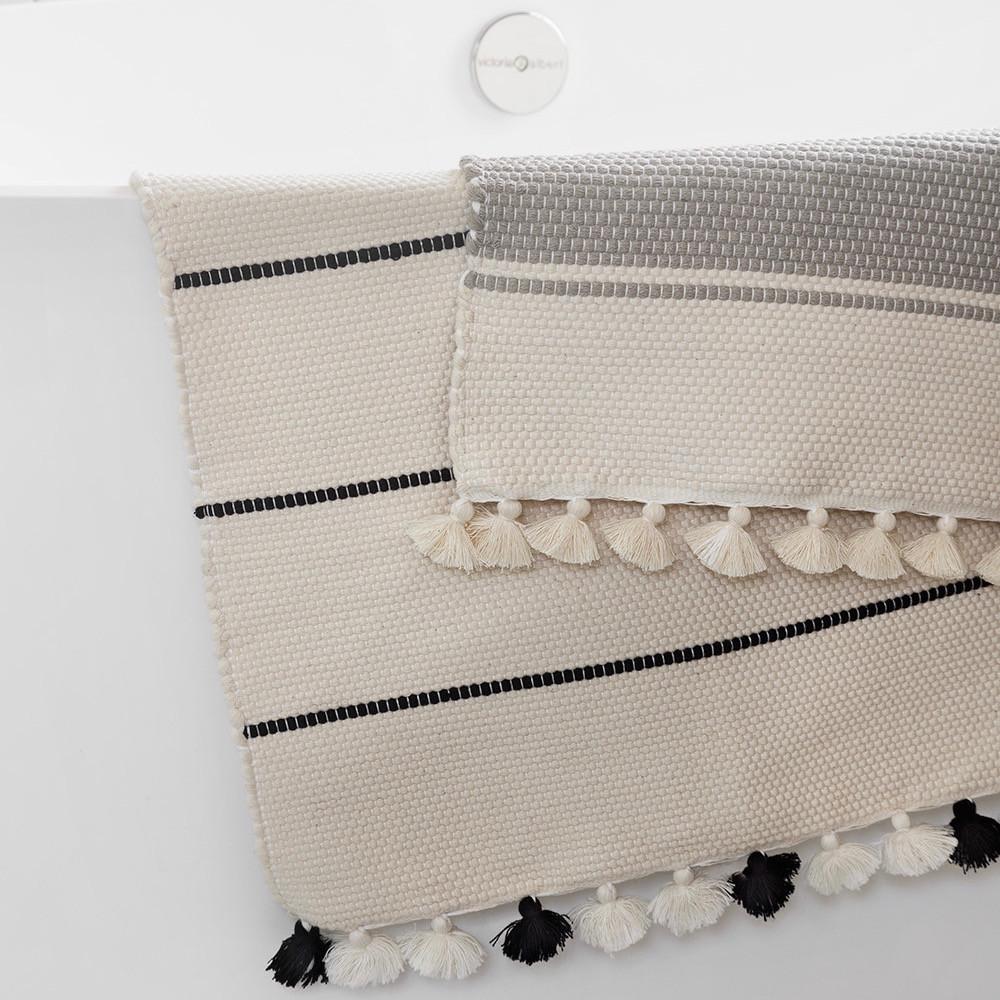 Crafted in a stone grey hue, finished with subtle tassels, this small bath rug instantly ups your bathroom game. Hand-loomed using premium cotton, your feet will thank you each time you step on this super soft texture.