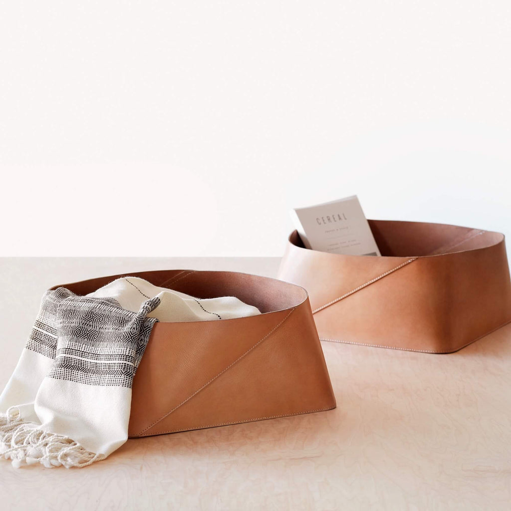 Luxe, ethically sourced leather, hand-stitched to perfection. Storage bins never looked this good.