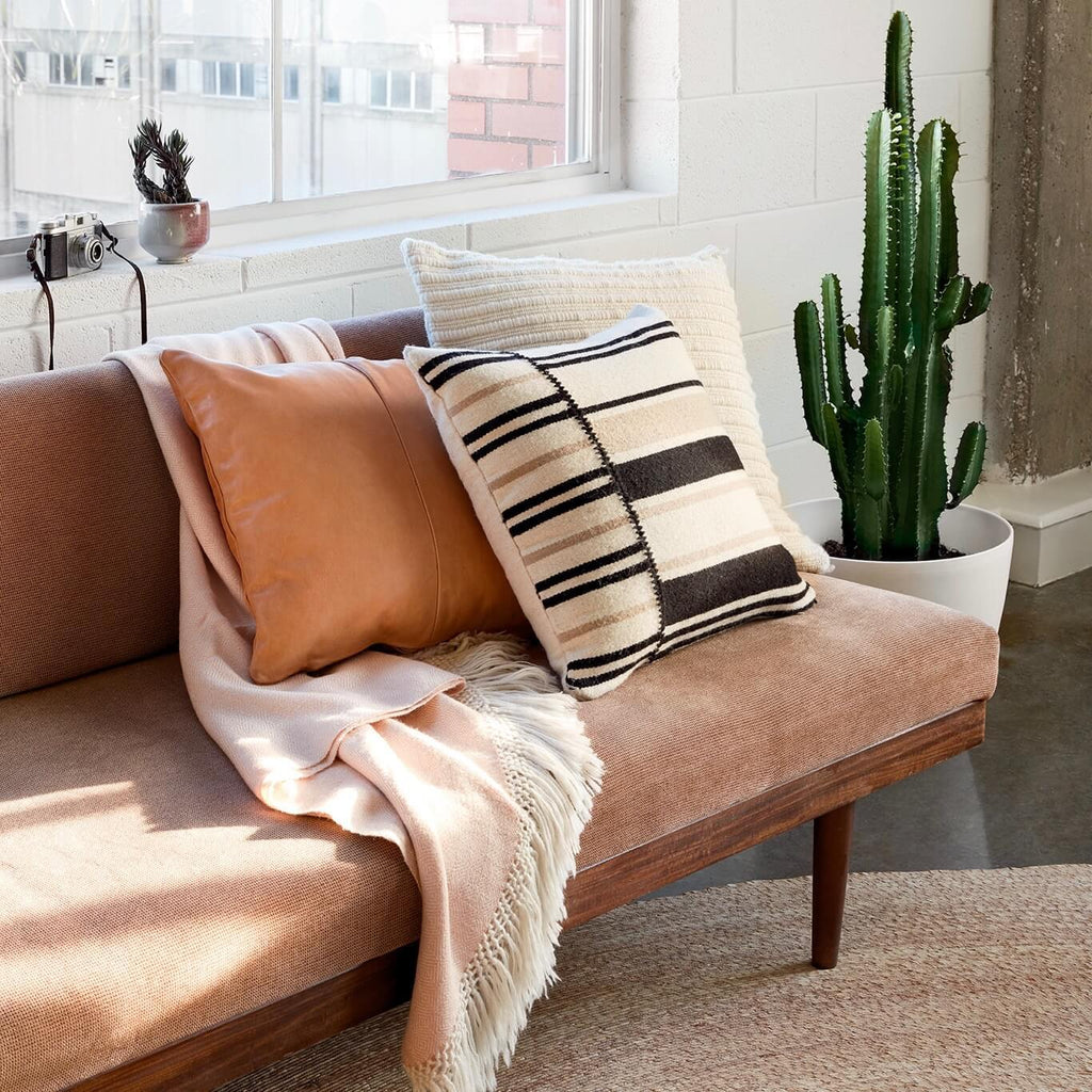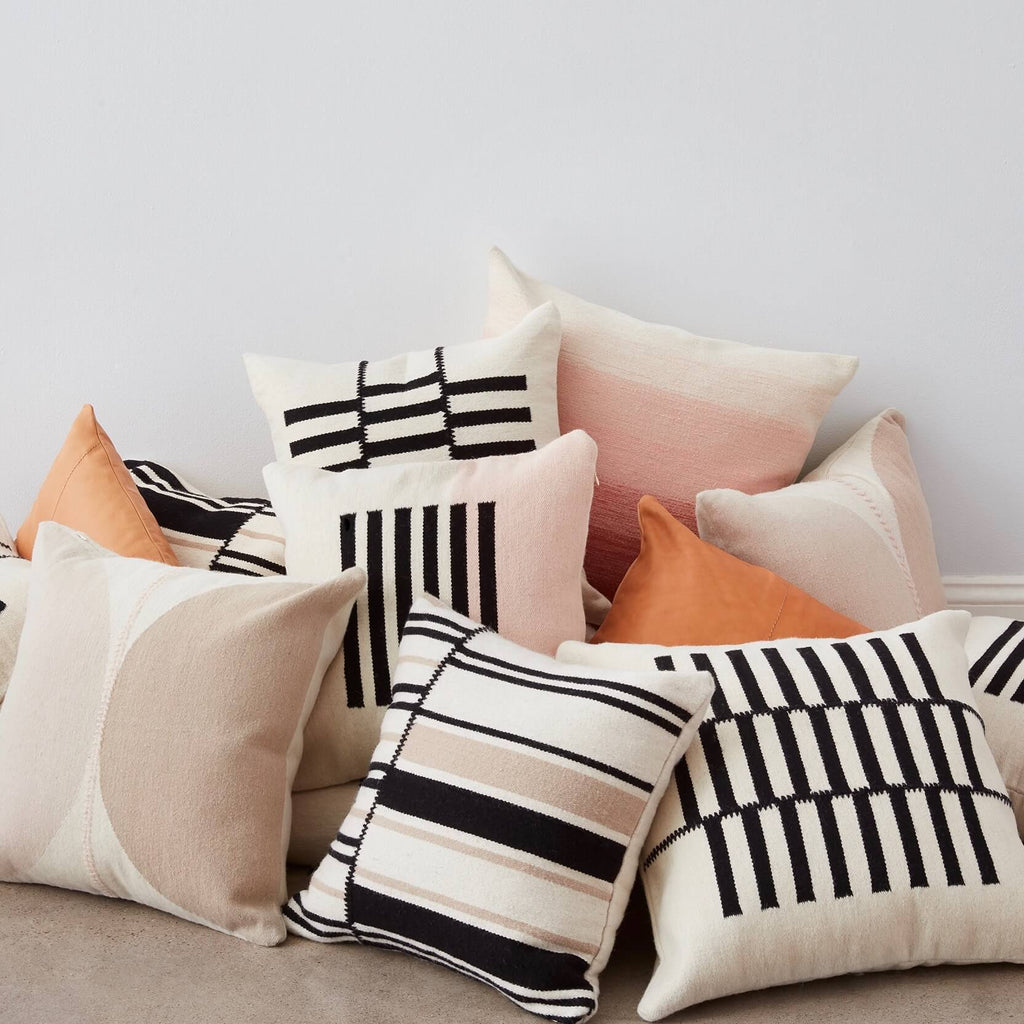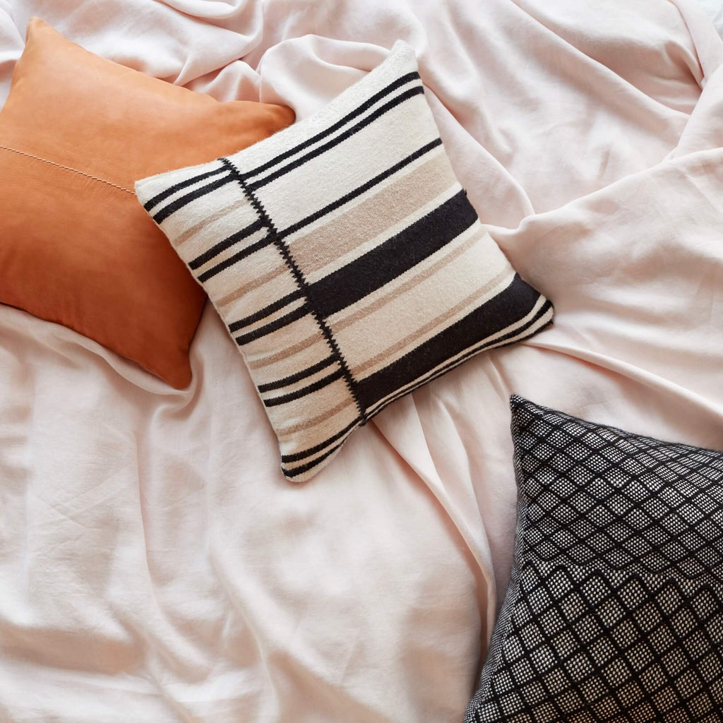 Neutral, yet bold. Subtle, yet statement making. A pillow that’s a true study in contrasts. This striped fellow is perfect styled anywhere, but with its hand-stitched details, you’ll want to put it front and center.