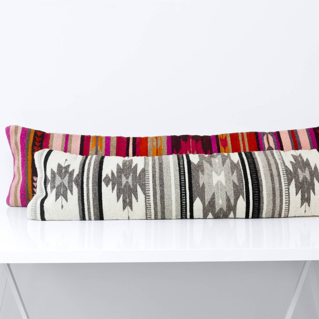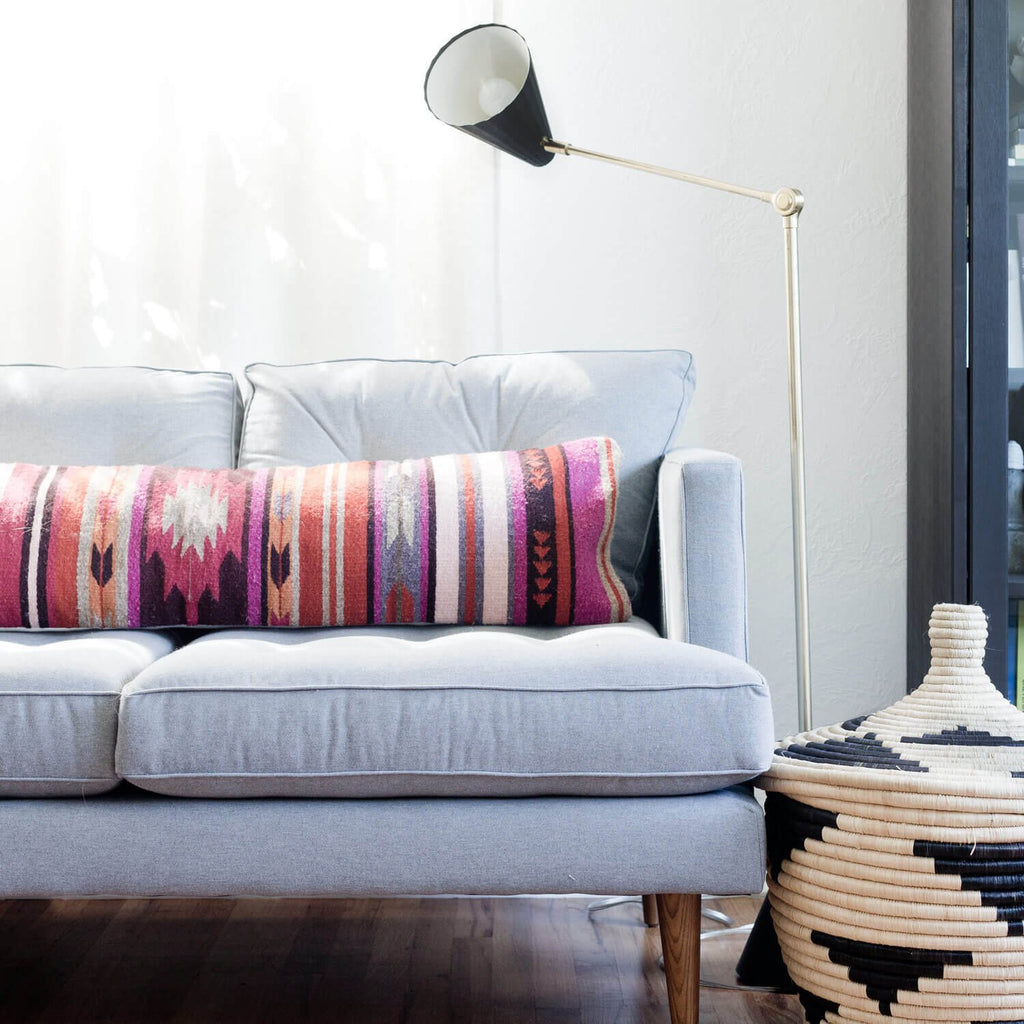 No more stressing to find the perfect pillow combination – with this one lumbar pillow, a room can take on a whole new look. Inspired by the geometric patterns used by the Zapotec tribes of the Oaxaca region, its structural designs and brilliant hues add the perfect pop of color to your bed or couch.