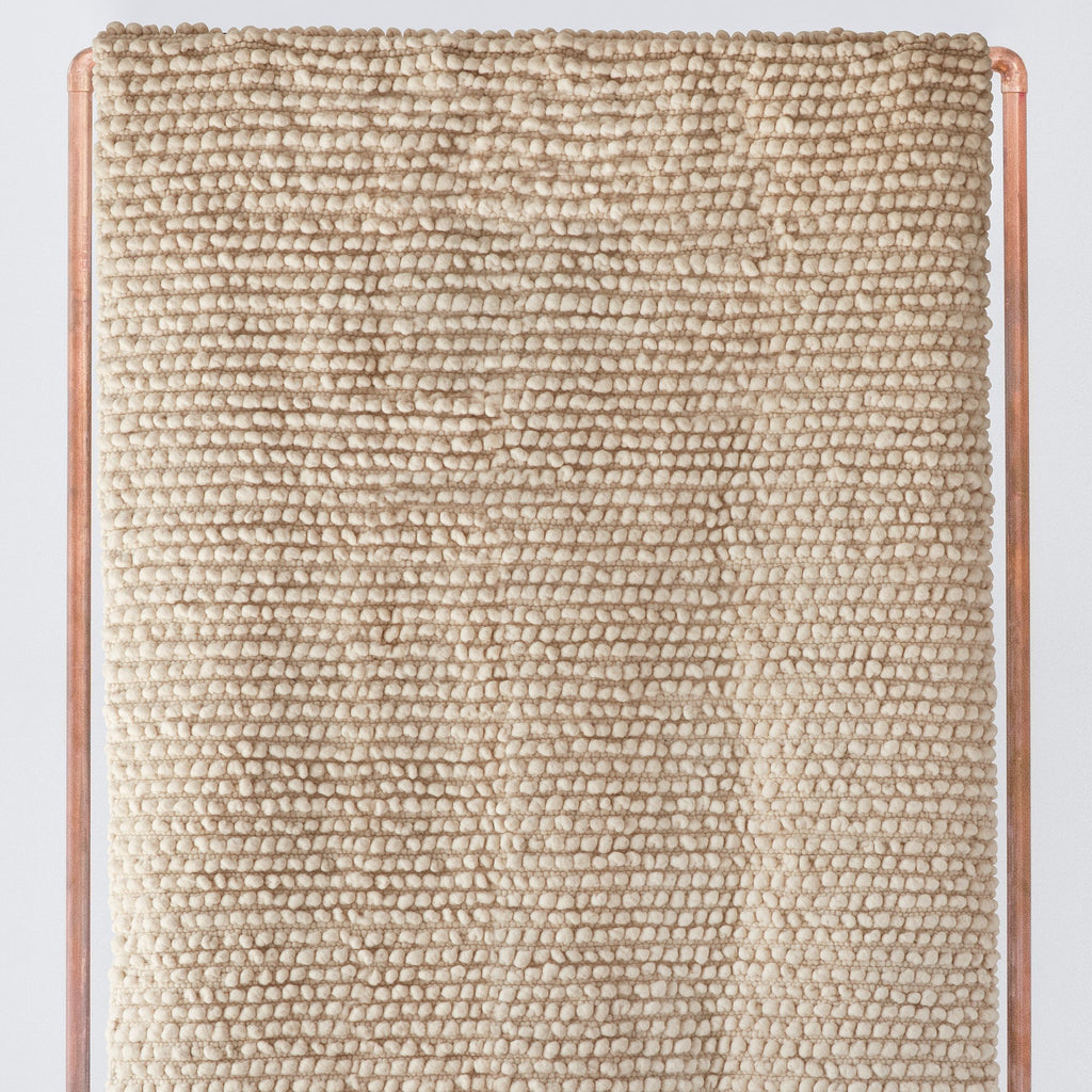 Masterfully hand-loomed and tufted using thick sheep’s wool, this chunky accent rug is one of the softest and most luxurious rugs your toes will ever touch. With its speckled oatmeal hue and textured weave, this piece brings an extra dose of cozy to any bedroom or den.