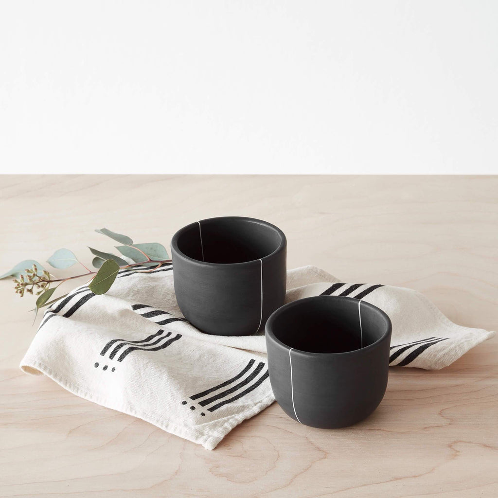 A set of six mud cloth napkins to bring that worldly look to your table. Hand-loomed using organic cotton, these handsome fellows are super soft and absorbent. Each set includes two complementary designs (3 of each pattern), and the set is finished with one leather tie.