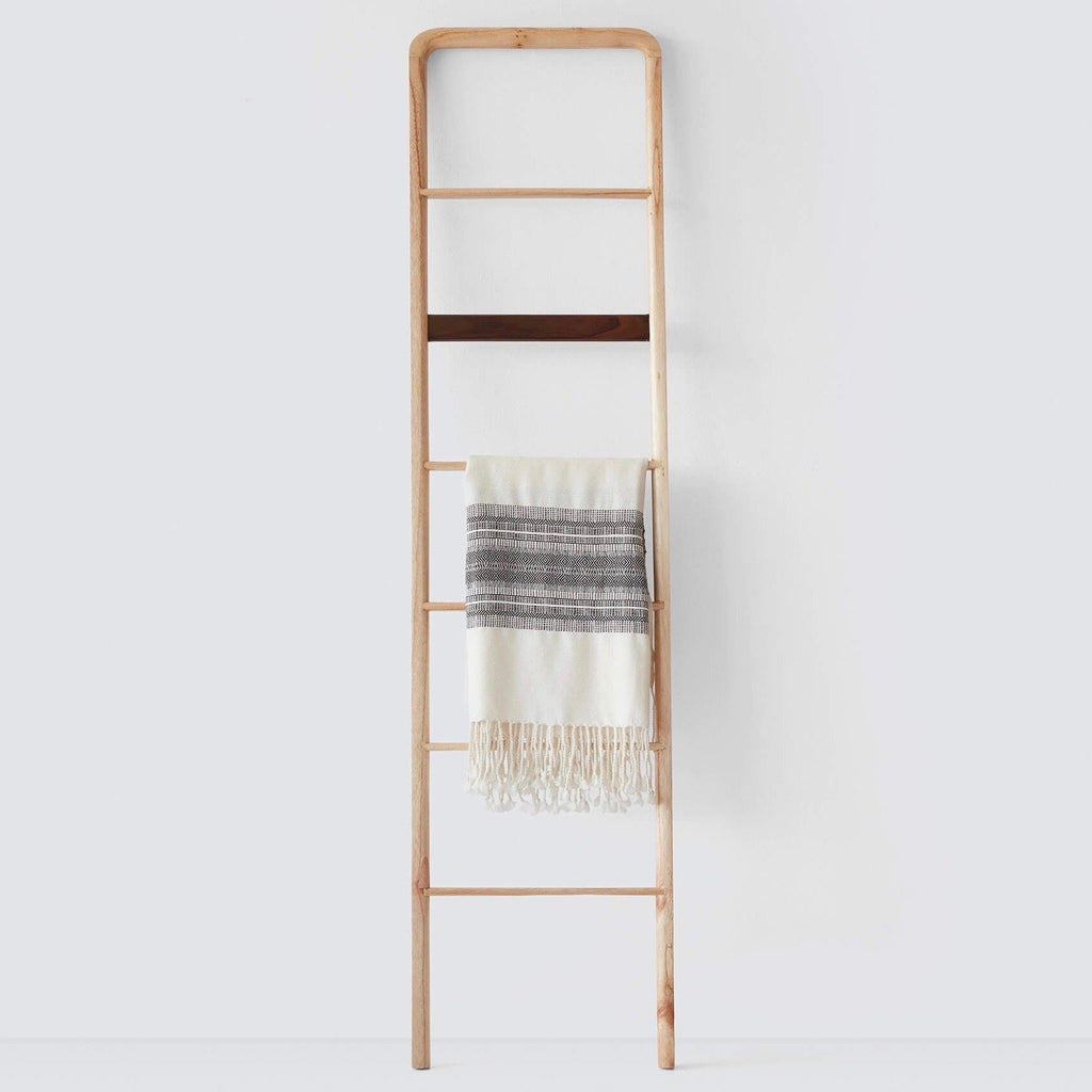 A mix of subtly grained mindi and rare rosewood, this storage ladder features a clean, timeless design. Perfect for storing blankets, clothes, or magazines, it’s the ultimate combination of form and function.