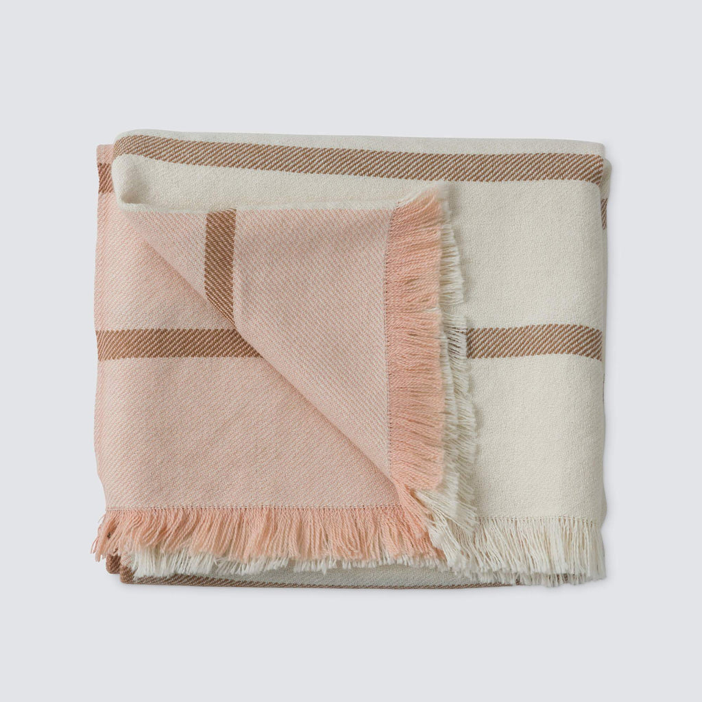 Hand-loomed in a grid of warm, desert tones, this cozy alpaca throw adds a playful pop.