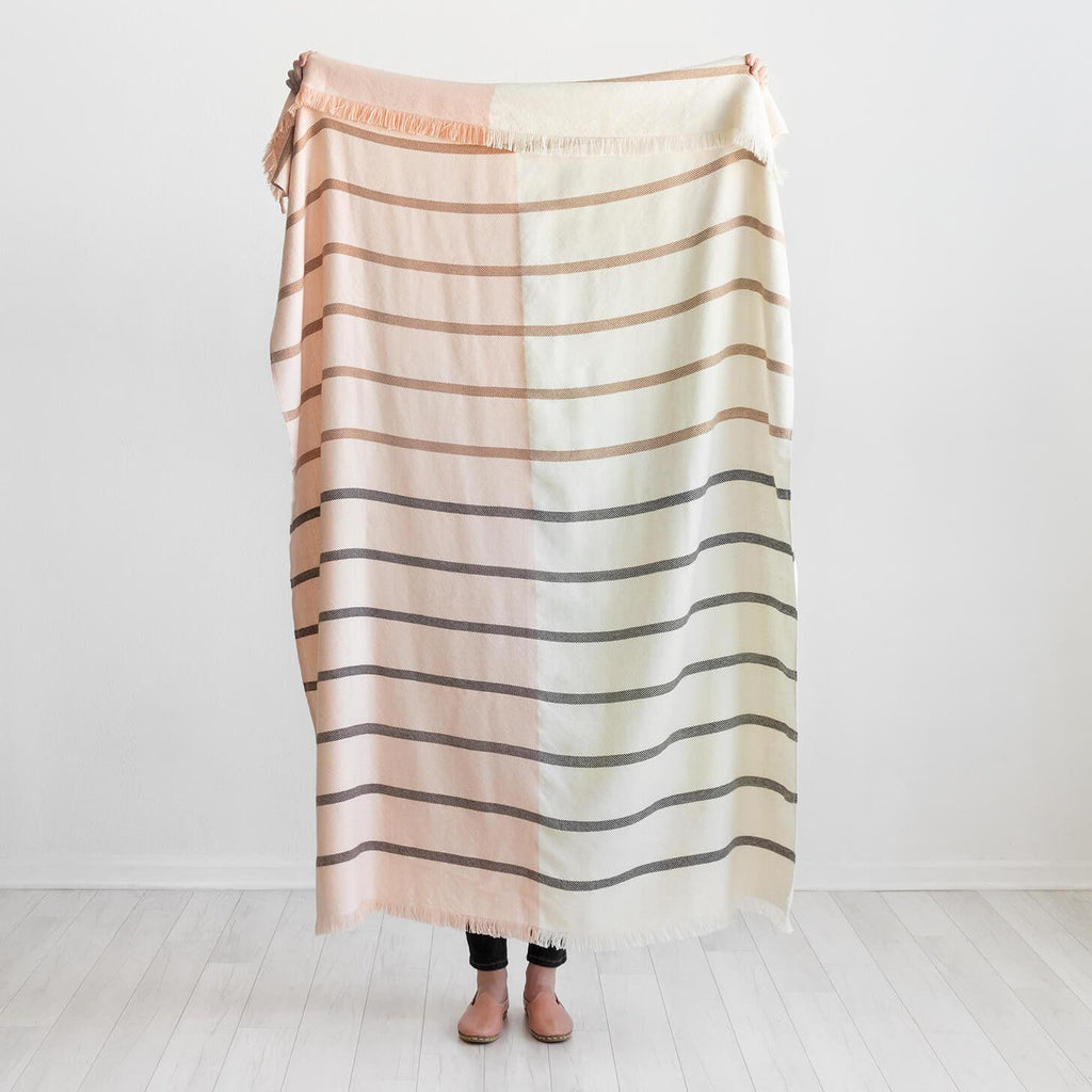 Featuring a color-block grid of warm, desert tones, this throw blanket is a thing of beauty. Hand-loomed from luxuriously soft alpaca, it’s made for those all-wrapped-up-and-cozy days.