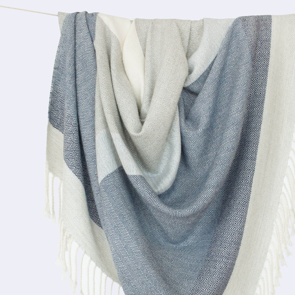 A contrasting mix of soft blues and cool neutrals, this alpaca throw is downright handsome. Thanks to its unique construction that features a different weaving technique in every stripe, this throw is incredibly soft and oh-so-cozy.