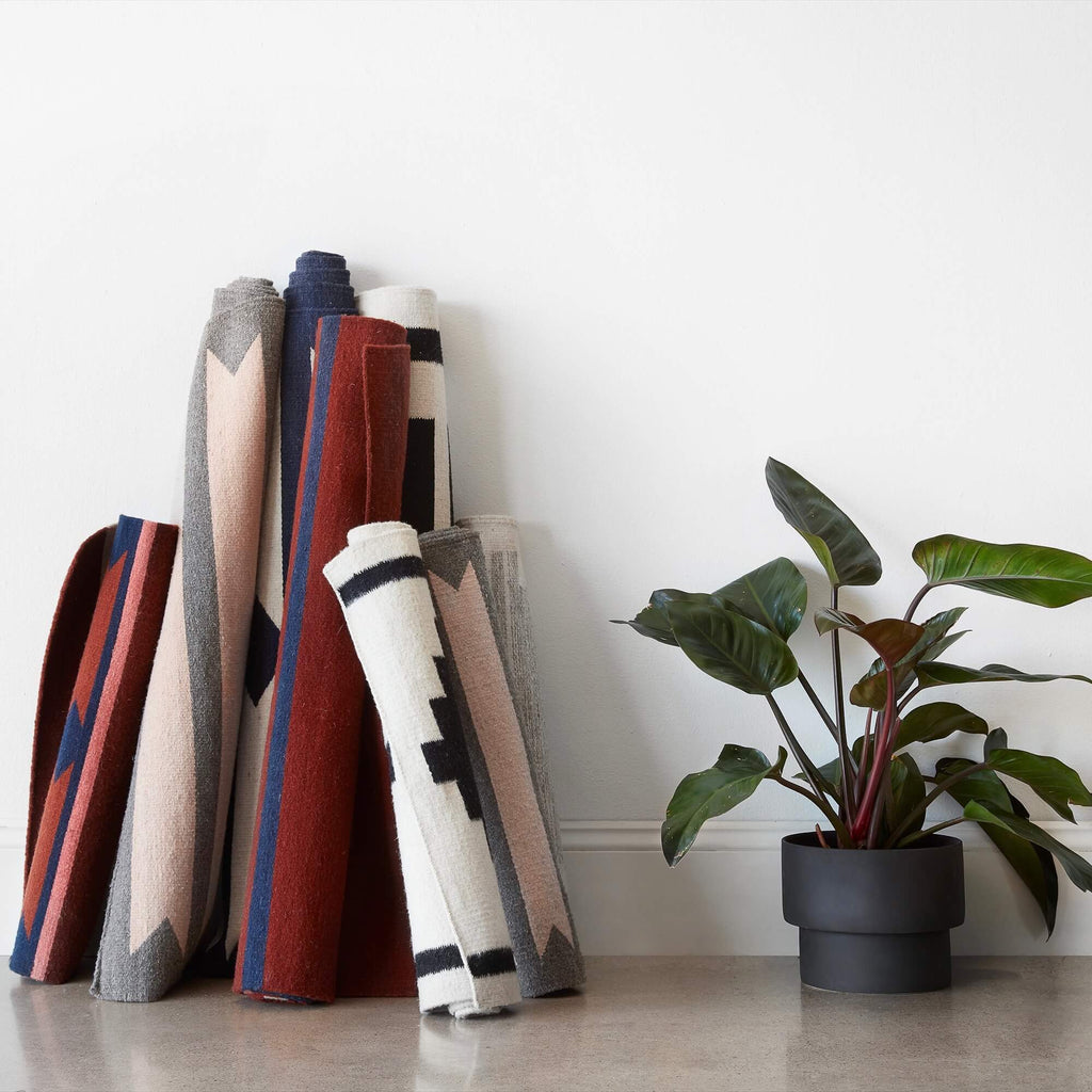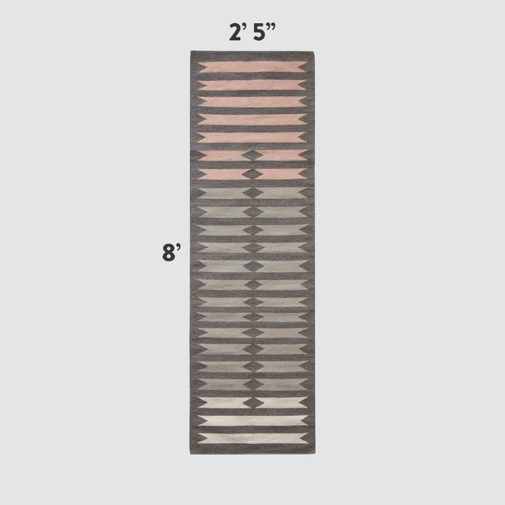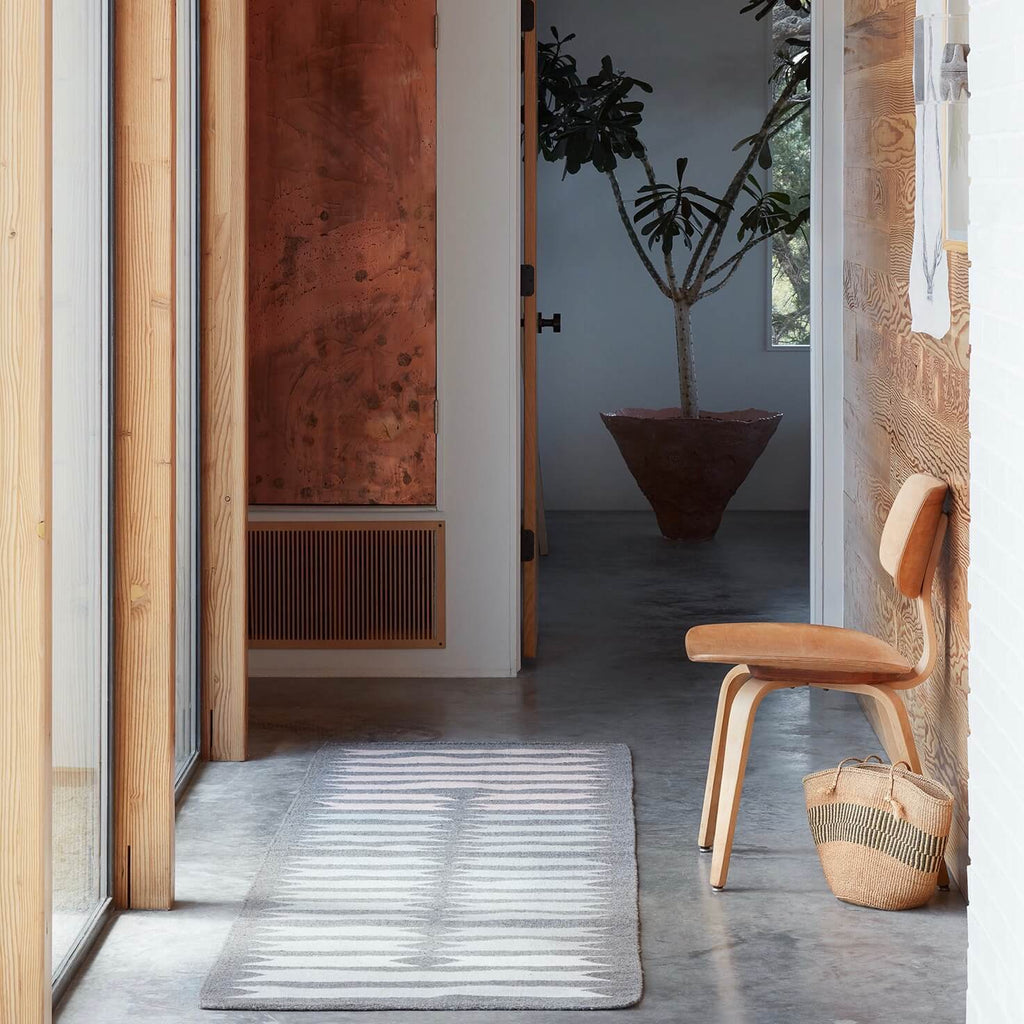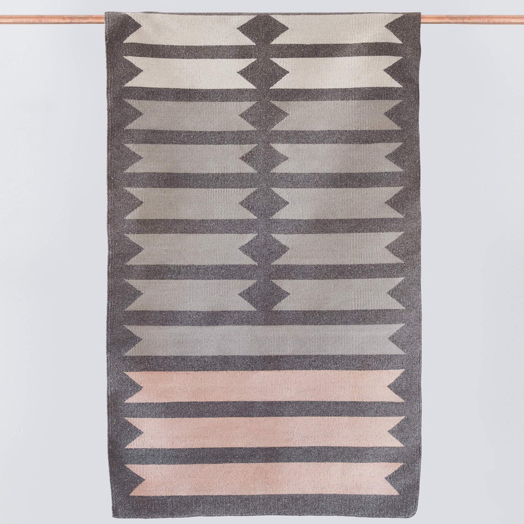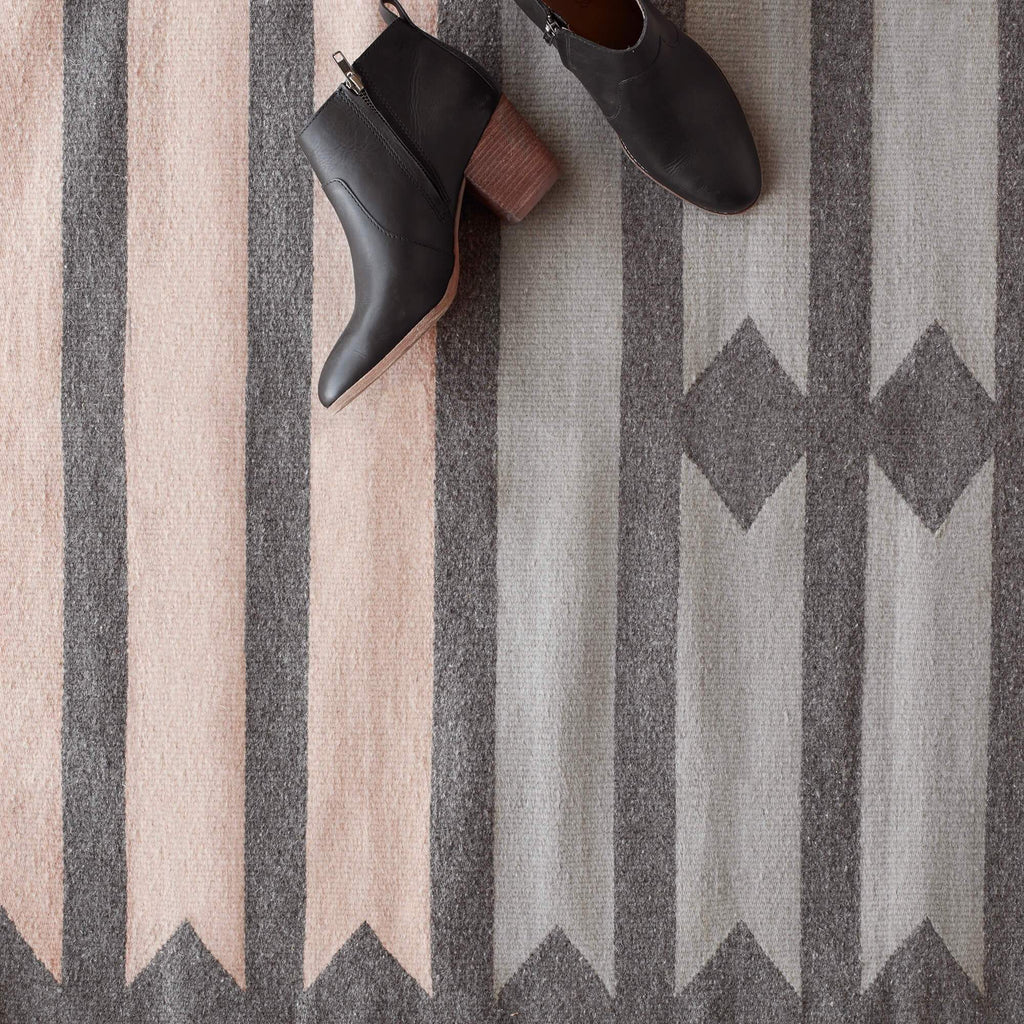 A bold, graphic pattern with an unexpected pop. We are swooning over this neutral hand-dyed palette, accented with a dash of dusty coral. This modern accent rug is a favorite of well, pretty much everyone, here at The Citizenry.