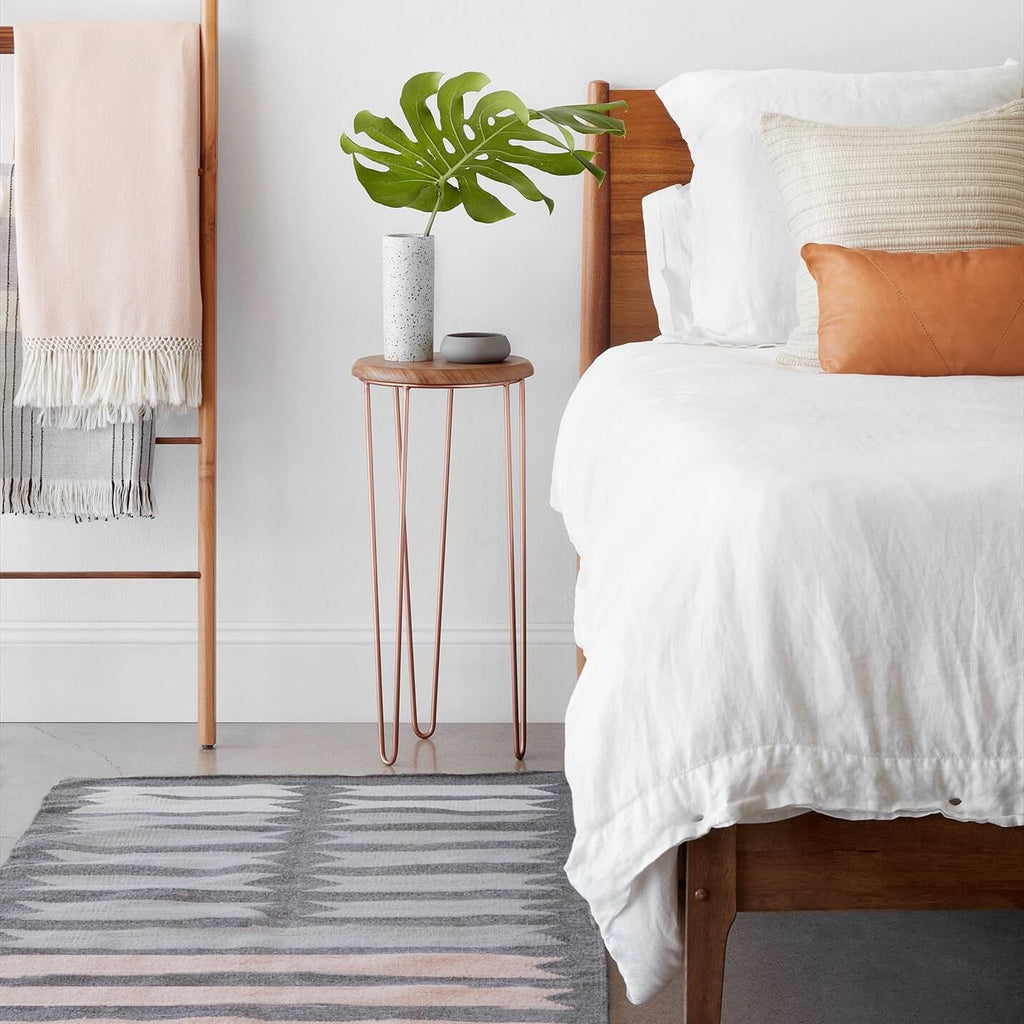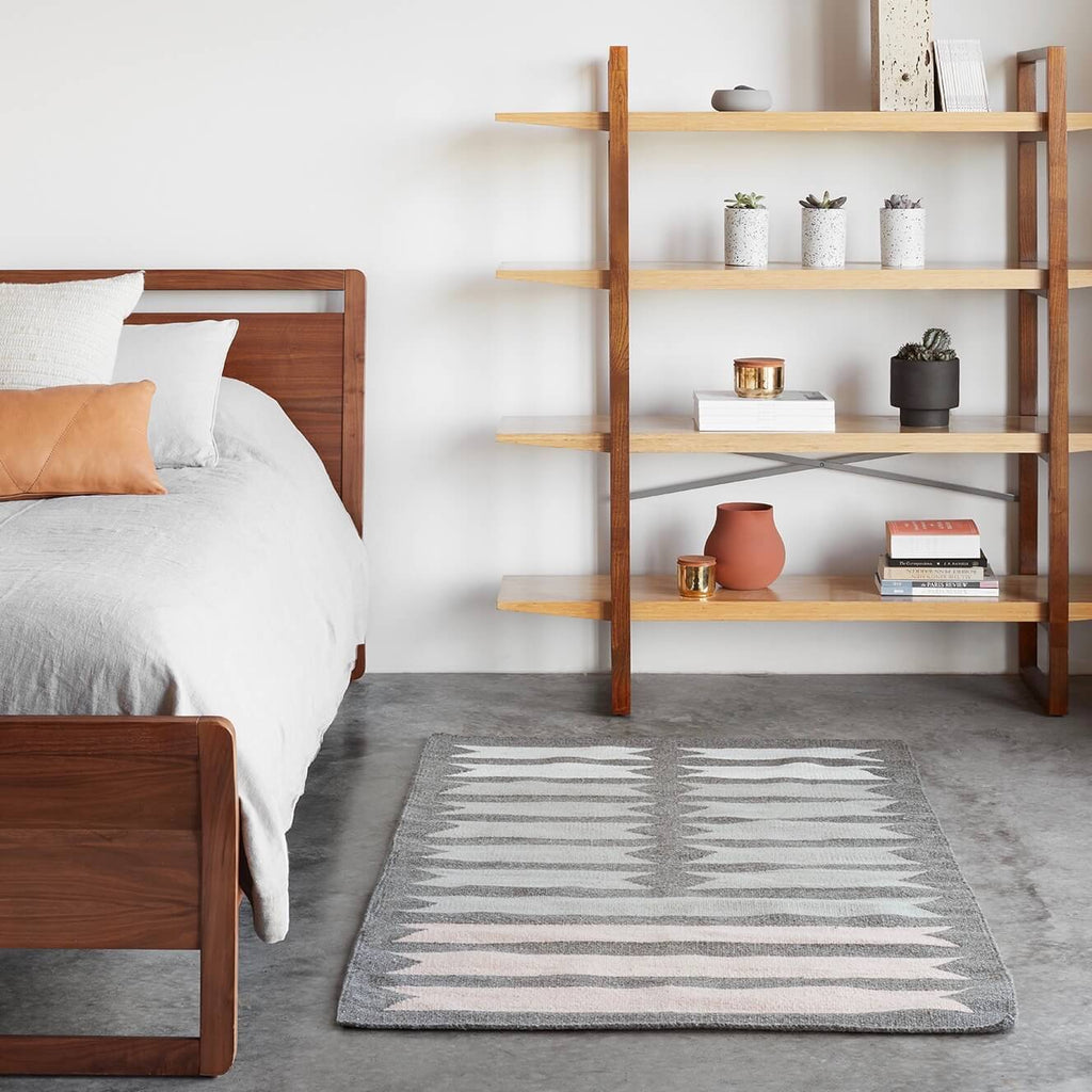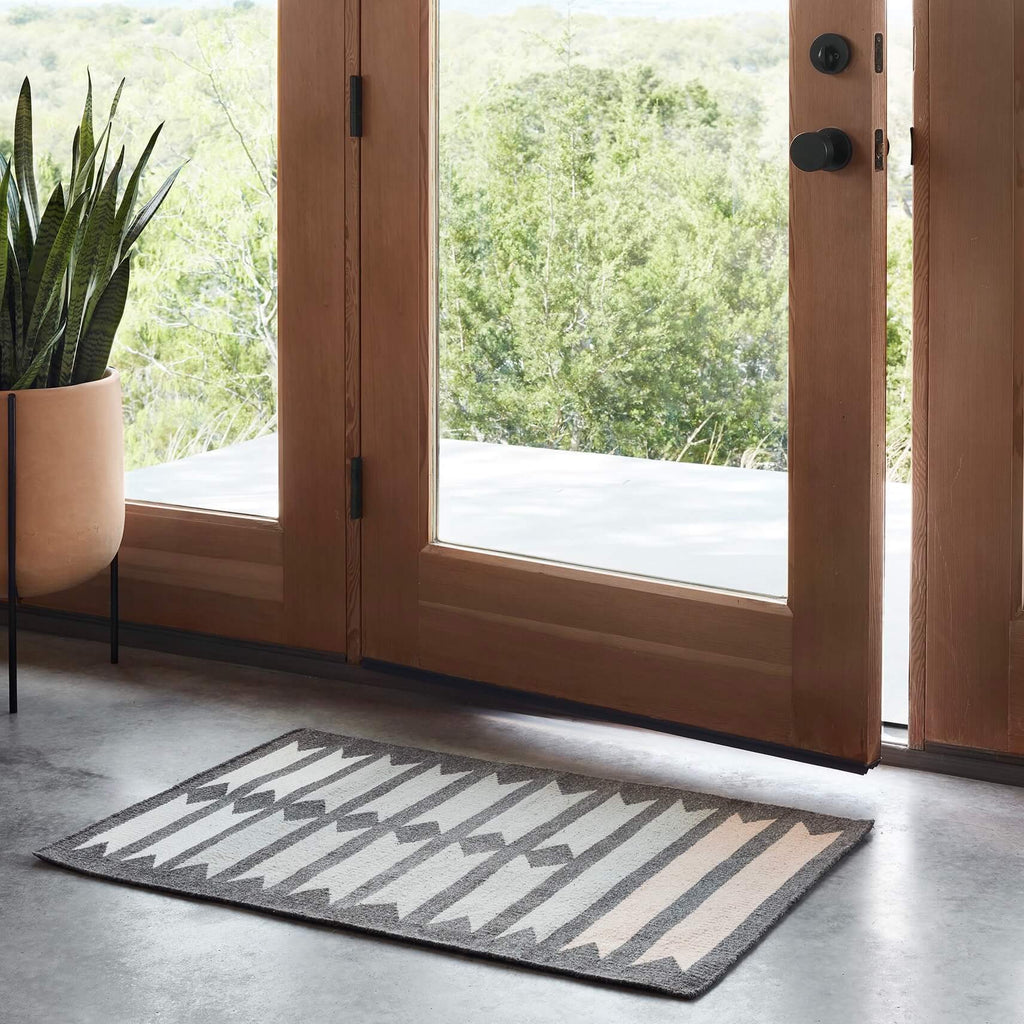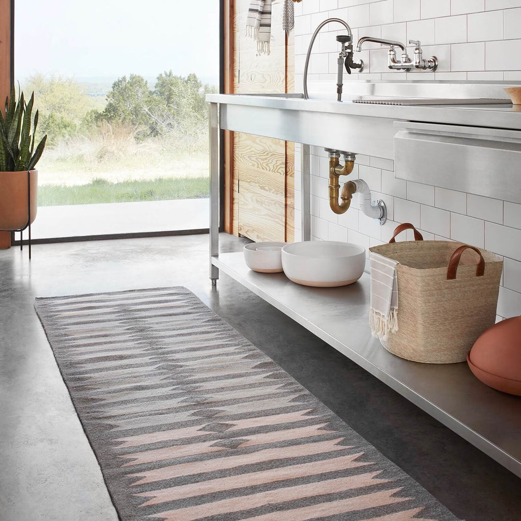 A bold, graphic pattern with an unexpected pop. We are swooning over this neutral hand-dyed palette, accented with a dash of dusty coral. This modern accent rug is a favorite of well, pretty much everyone, here at The Citizenry.