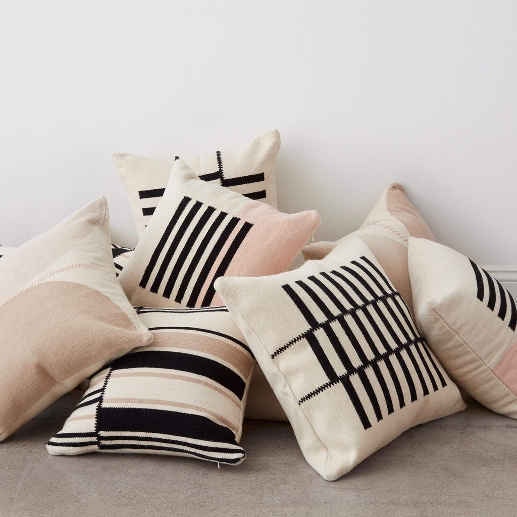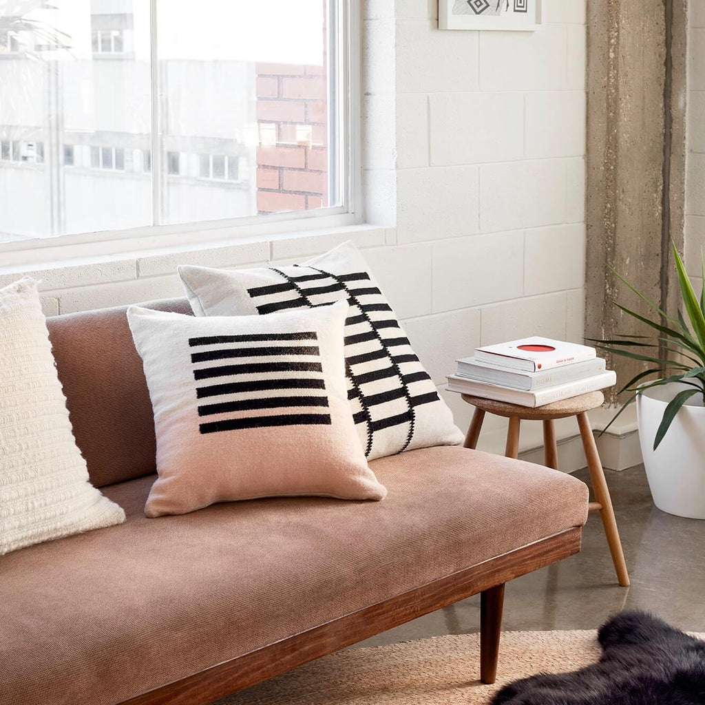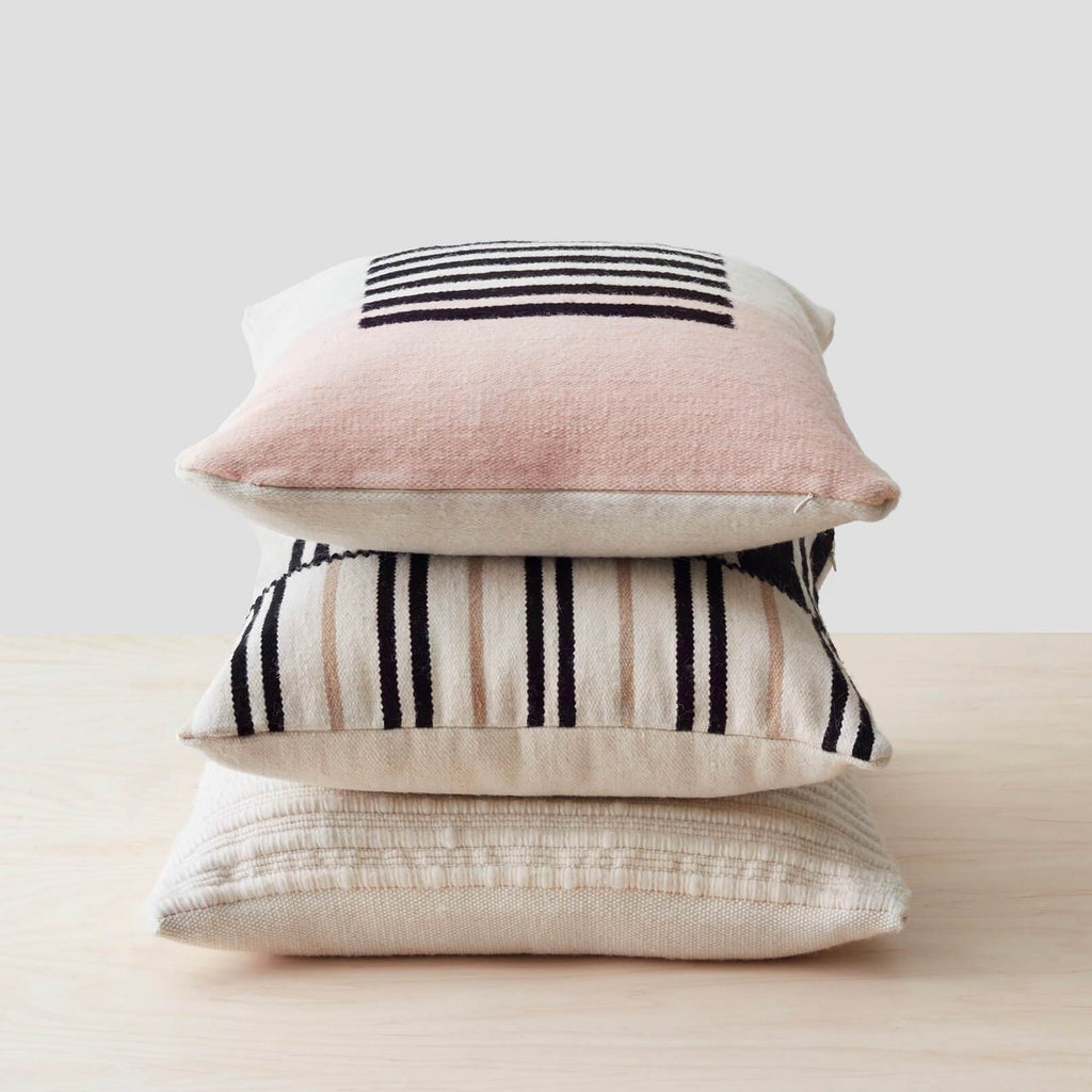 Neutral, yet bold. Subtle, yet statement making. A pillow that’s a true study in contrasts. This striped fellow is perfect styled anywhere, but with its hand-stitched details, you’ll want to put it front and center.