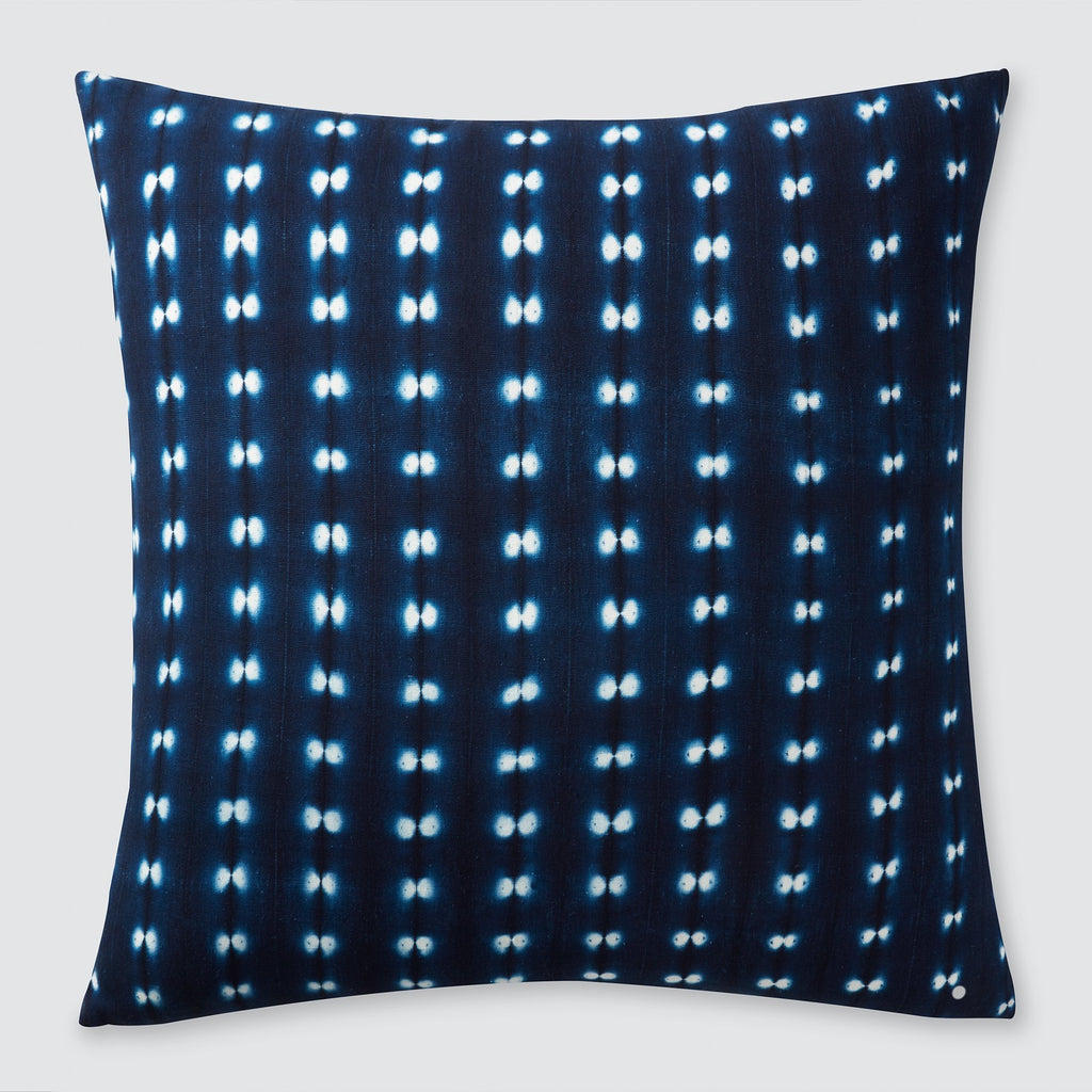 Indigo-dyed cotton has been treated to resist fading or bleeding; however, natural dyes may transfer to furniture or clothing. Avoid unnecessary contact with water or moisture. Dry clean only.