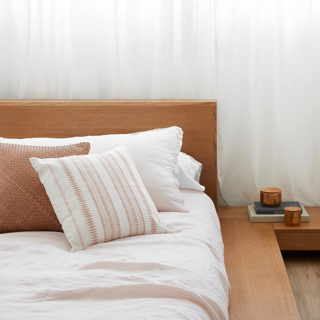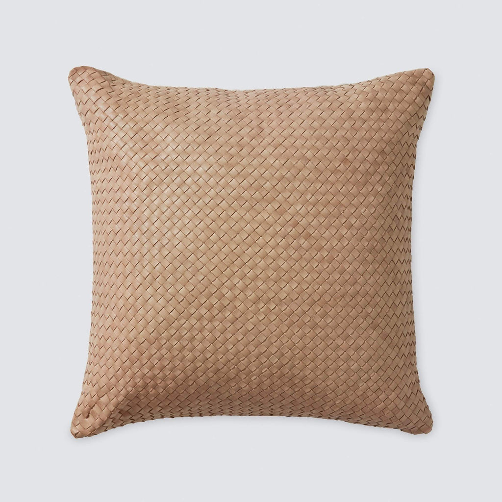 Woven from vegetable-tanned leather from Kolkata, this accent pillow instantly elevates the look of any pillow combination with its warm tan hue and luxe texture. The best part? This piece is made using leather scraps from our block print pillows, so it’s as sustainable as it is handsome.