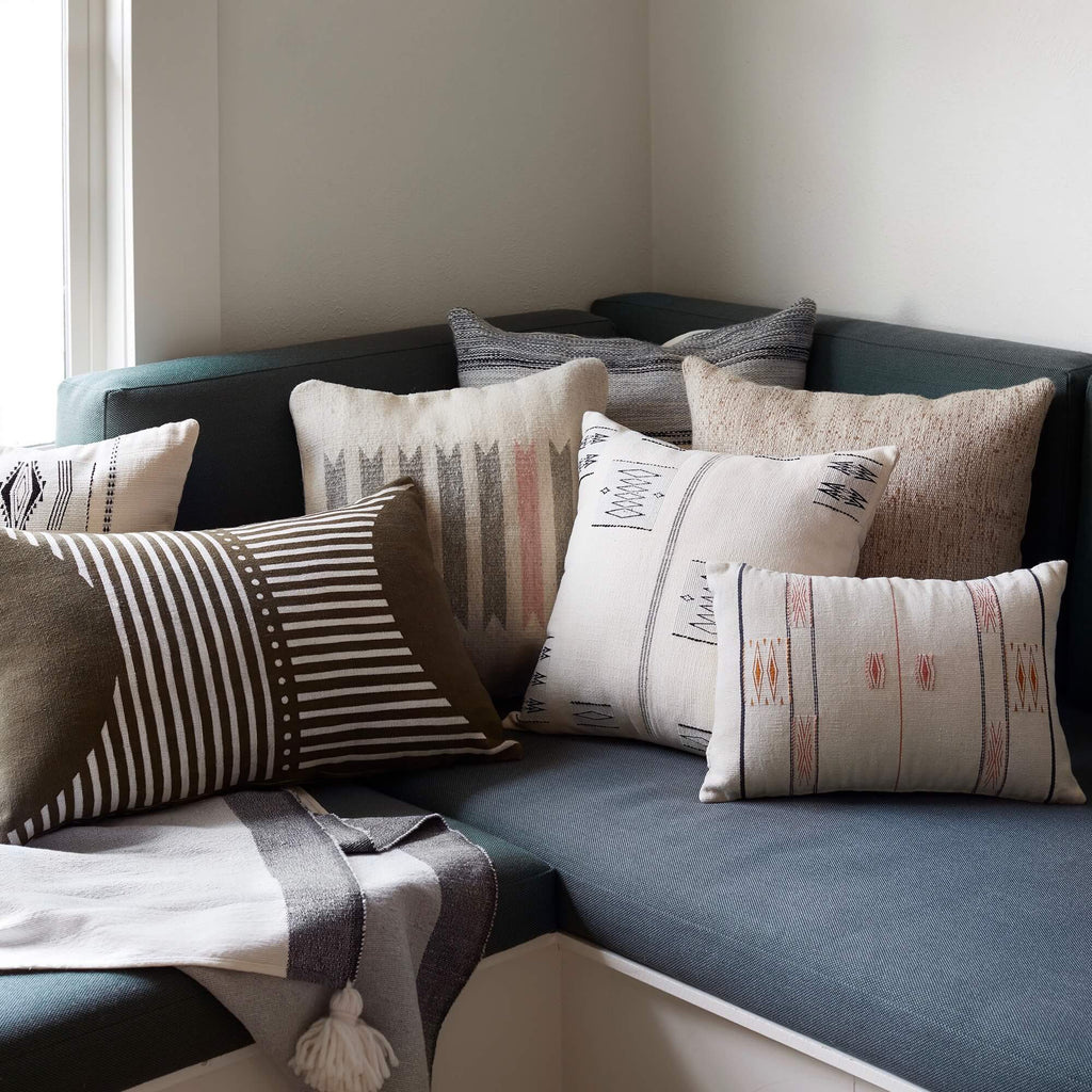 Each one is made by a group of talented women in Dimapur, India, who’ve perfected the art of backstrap weaving over centuries. Handwoven from incredibly soft cotton, this pillow takes almost a full day to complete. All made start-to-finish in a fair trade environment.