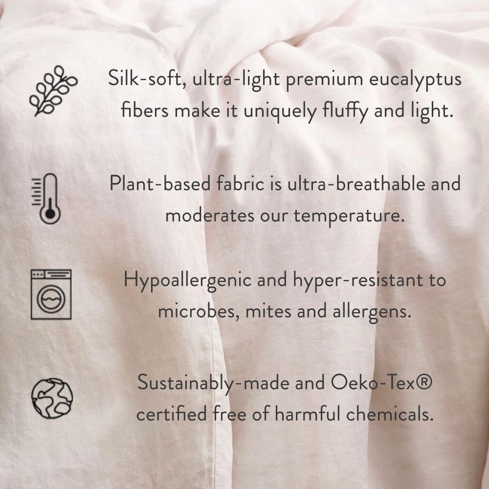 Create a luxurious, cloud-like bed with our go-to comforter from Buffy. Crafted from silky-soft, lightweight eucalyptus fibers, it’s incredibly fluffy, yet cool and breathable.