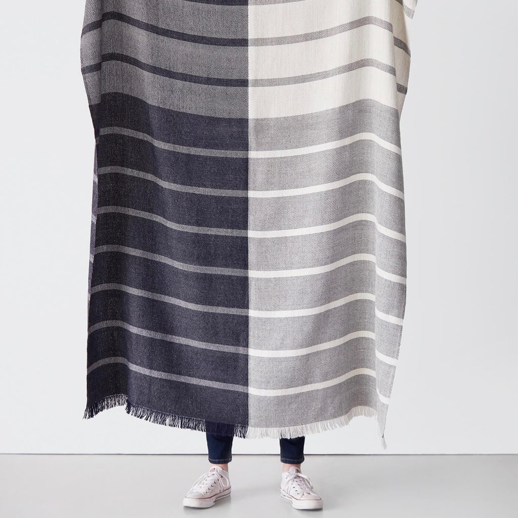 Impeccably hand-loomed in a contrasting grid of rich navy, grey, and cream, this throw blanket is a modern classic. Made from baby alpaca, a fiber so luxurious it was once reserved for Inca royalty, this handsome blanket is extra soft and cuddly.