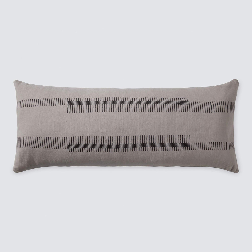Architectural lines. Minimal palette. A modern, oversized lumbar to elevate the look of your bed. Meticulously block printed by hand, this pillow is crafted from crisp cotton and hand-dyed to perfection.