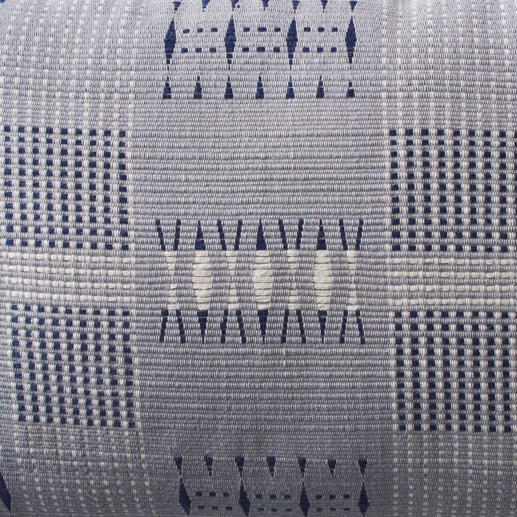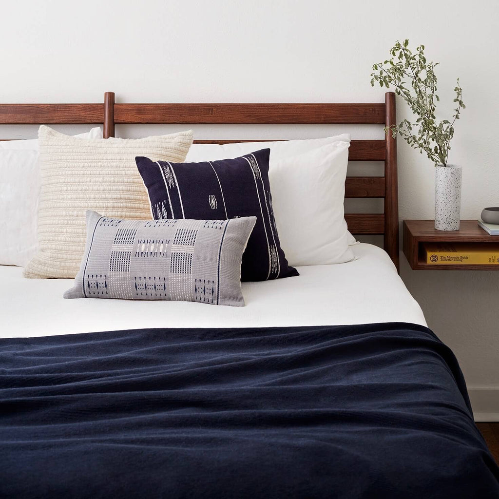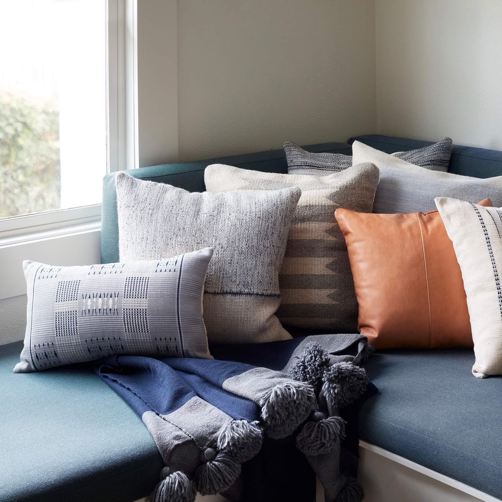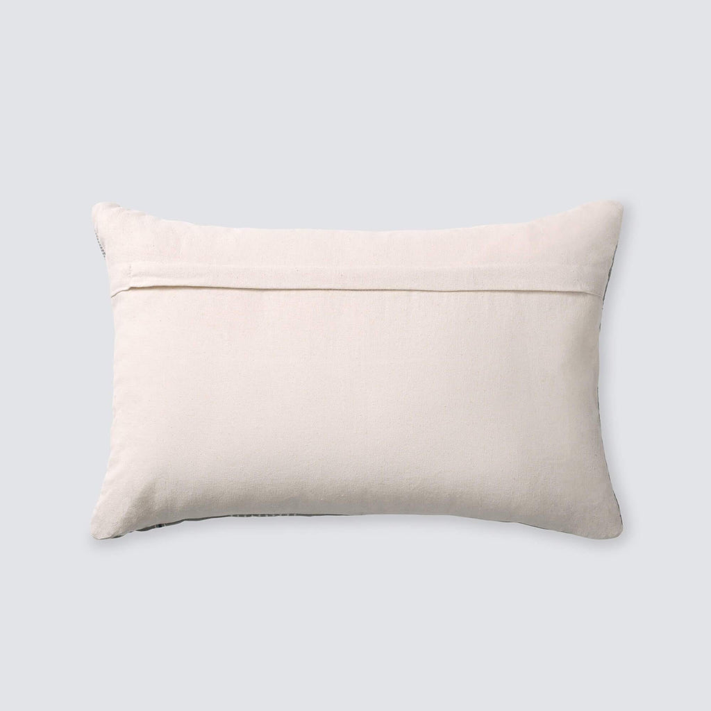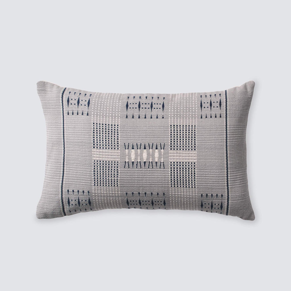 Blending tribal motifs with modern design, this lumbar pillow adds just the right amount of global style anywhere you put it. And in a striking palette of blue-grey, white, and navy, it’s minimal and high impact at the same time.